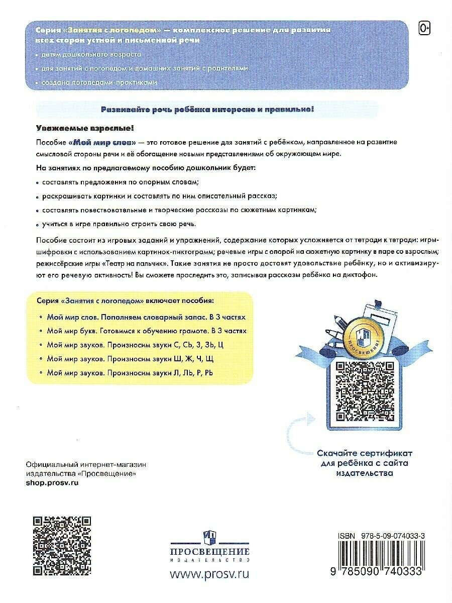 Мой мир слов Пополняем словарный запас Учебное пособие для детей 5-7 лет В трех частях Часть 3 (Аниканова Наталья Евгеньевна); Просвещение, 2023