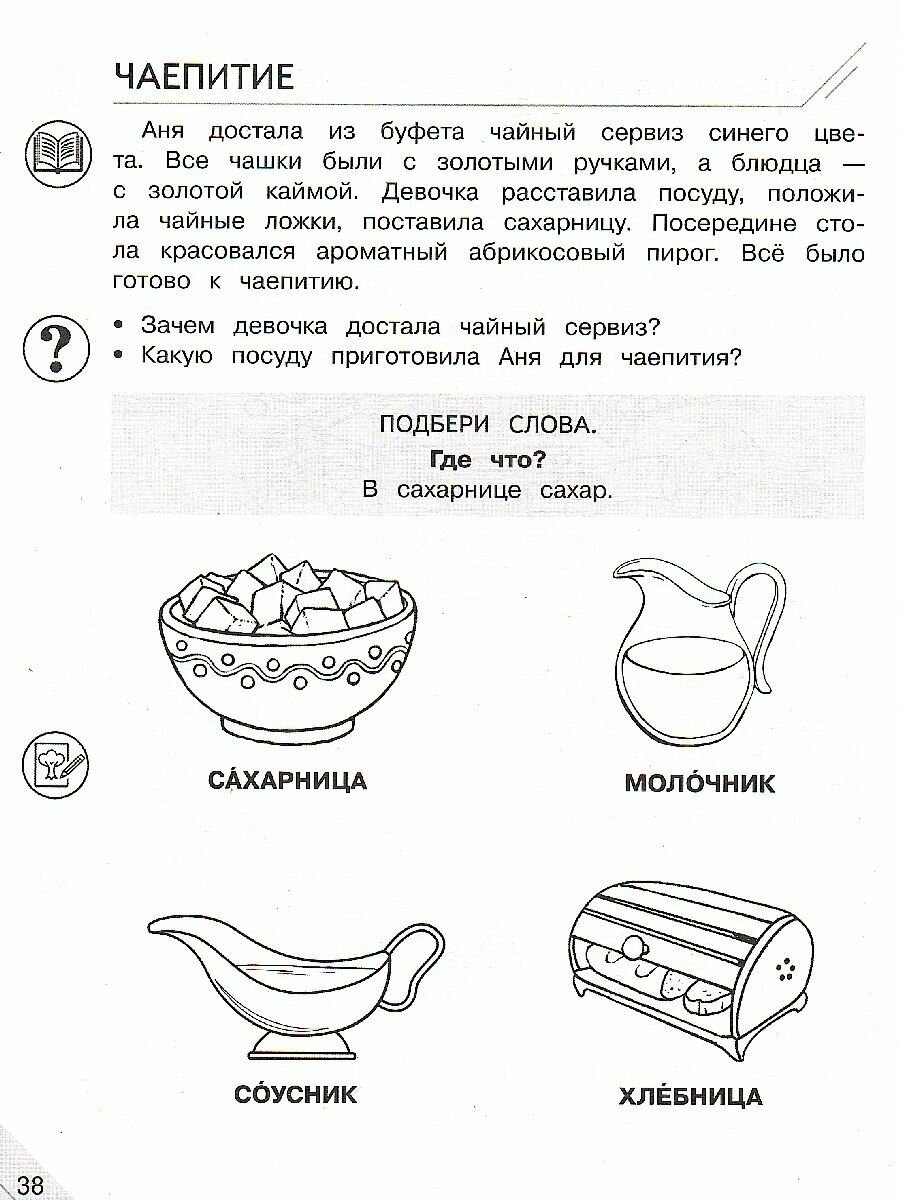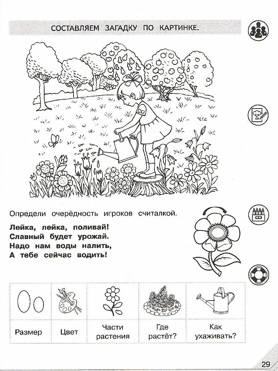 В первую часть пособия включены задания по формированию навыка словообразования, составлению словосочетаний и простых предложений по картинкам и схемам. В пособии предусмотрена возможность отслеживания динамики речевого развития дошкольников: составленные детьми описательные рассказы с использованием мнемодорожек записываются на диктофон для последующего анализа по завершении занятий. Итоговым заданием каждого лексического блока служит речевая игра с опорой на сюжетную картинку, в которой ребёнок составляет загадку, используя пиктограммы-подсказки. Работа с пособием заканчивается интересным заданием на развитие диалоговой речи через режиссёрскую игру — «Театр на пальчик».