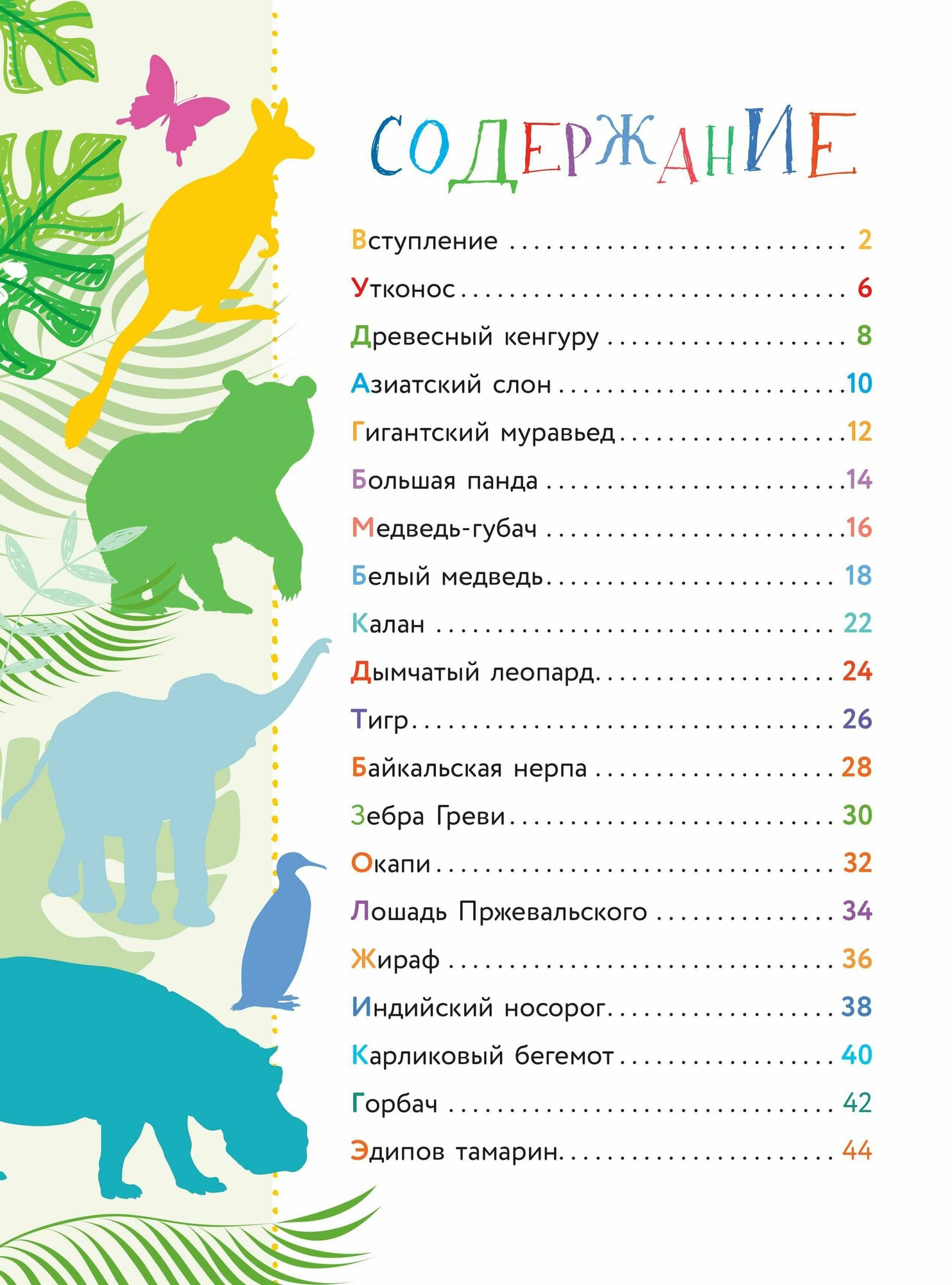 В этой книге ты увидишь своих самых любимых животных: тигра, слона, жирафа, носорога, дымчатого леопарда, большую панду, белого медведя и многих-многих других. К сожалению, теперь этих животных чаще можно увидеть в зоопарках, чем в живой природе. Но все-таки мы надеемся, что эти и многие другие прекрасные животные, живущие на нашей планете, сохранятся. Международный союз охраны природы и природных ресурсов защищает и оберегает не только самих животных, попавших в Красную книгу, но и места их обитания: леса, луга, горы, реки и озёра, моря и океаны. Это очень важно - охранять природу и тем самым спасти редких исчезающих животных дать им возможность вести привычный образ жизни, строить норы и вить гнезда, кормиться любимыми растениями, жить в чистой воде и выводить потомство. О жизни "краснокнижных" животных всего мира и расскажет малышам наша Красная книга.