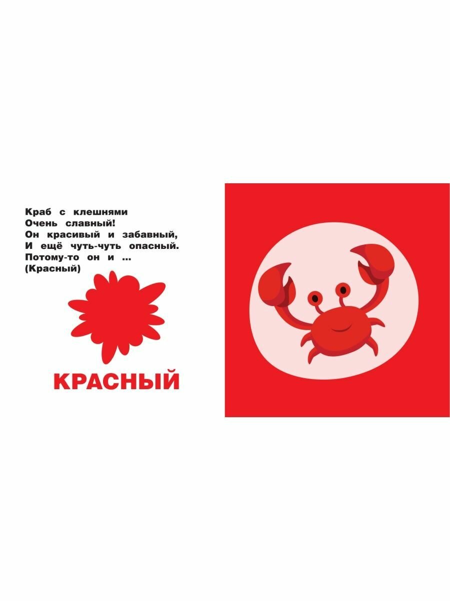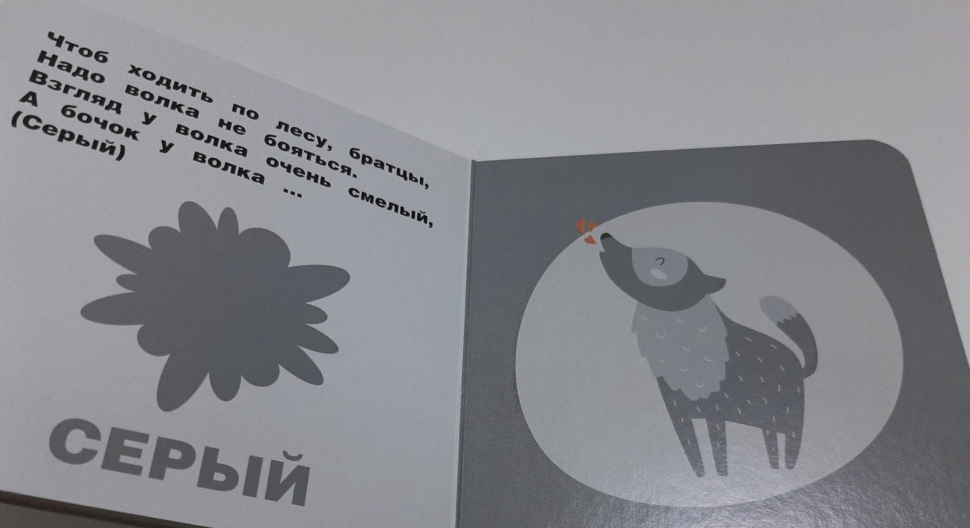 Очень красивая книга. Сделано на совесть,листы очень толстые и плотные,края закруглённые. Очень милый животные особенно понравились волк и цыплёнок. Рисунки яркие,привлекающие внимание. На каждый цвет идёт картинка и стишок,помогает лучше запоминать цвета. По размеру компактная,для ребёнка то что нужно. Обязательно будем покупать другие книги из этой серии
