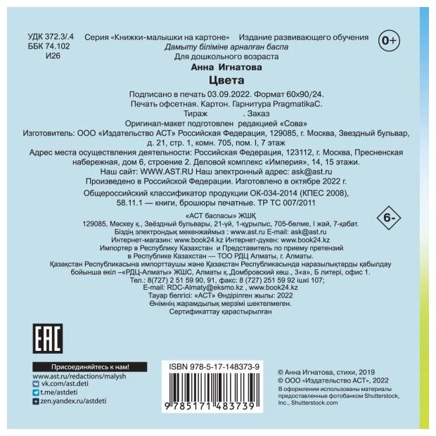 Сервис сравнения цен СкидкаГИД предлагает сравнить цены на товар «Книга: Цвета (Игнатова Анна Сергеевна); Сова. Малыш (Обучающая и развивающая литература), 2022»