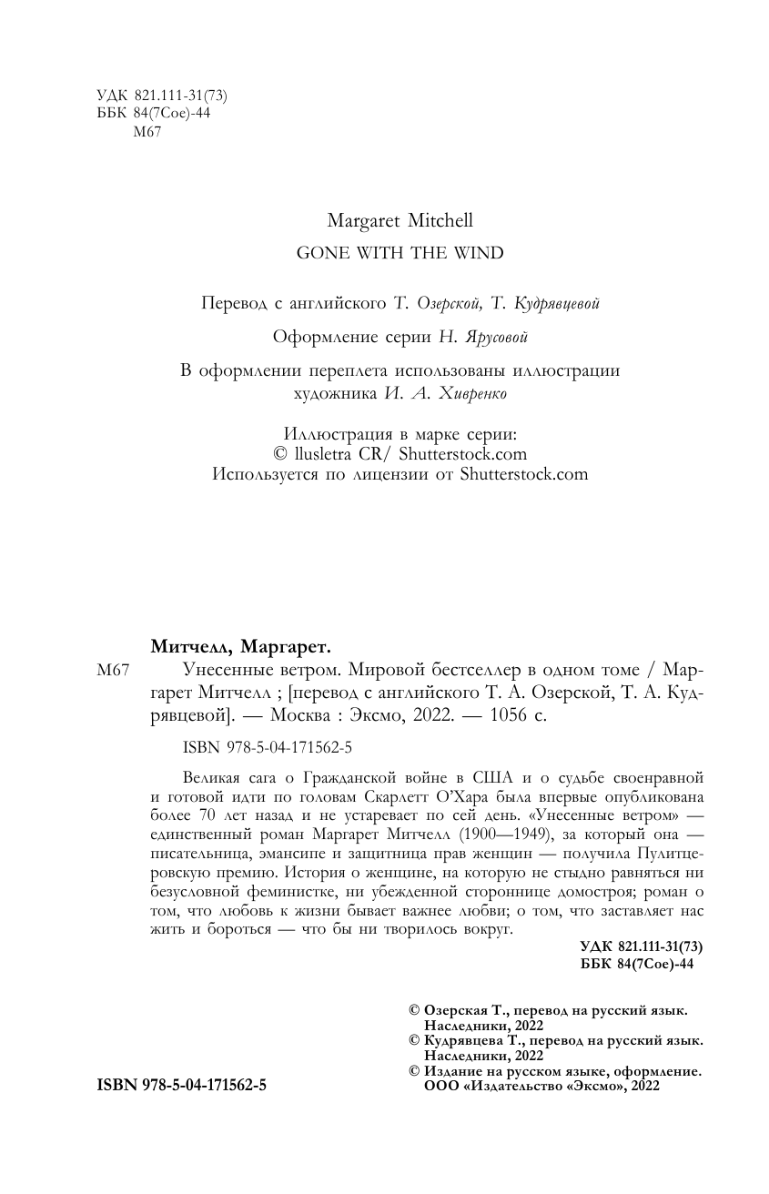 Унесенные ветром. Мировой бестселлер в одном томе (Митчелл Маргарет); ООО "Издательство "Эксмо", 2022