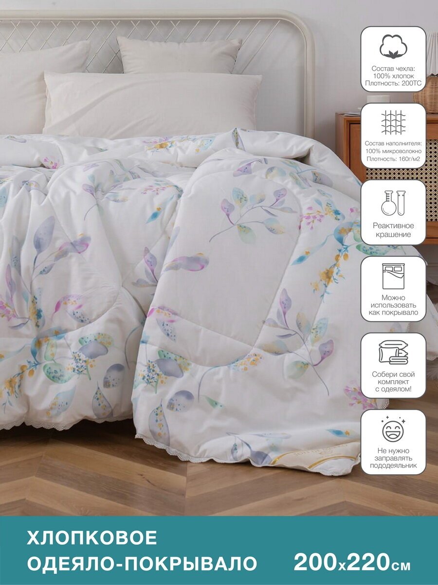 Новые одеяла из натуральных материалов не только комфортные, но и необычайно красивые. Обратите внимание на дизайн одеял: они выполнены в актуальном стиле Прованс, который принесет нотки французского шарма в ваш дом. Одеяла изготовлены из натурального хлопка, наполнитель микроволокно, поэтому они упругие, легкие, под ними приятно спать. Хлопок хорошо регулирует тепло, летом под таким одеялом не будет жарко, а зимой холодно, ведь наполнитель эффективно поглощает влагу. За изделиями легко ухаживать: стирка при температуре не выше 30 градусов с минимальным отжимом. Важно хорошо просушить! При правильном уходе вещь прослужит долгие годы, не потеряв форму.