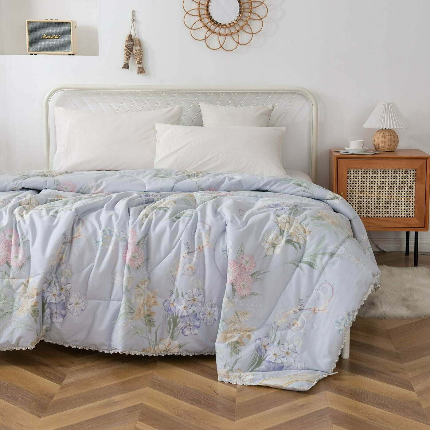 Новые одеяла из натуральных материалов не только комфортные, но и необычайно красивые. Обратите внимание на дизайн одеял: они выполнены в актуальном стиле Прованс, который принесет нотки французского шарма в ваш дом. Одеяла изготовлены из натурального хлопка, наполнитель микроволокно, поэтому они упругие, легкие, под ними приятно спать. Хлопок хорошо регулирует тепло, летом под таким одеялом не будет жарко, а зимой холодно, ведь наполнитель эффективно поглощает влагу. За изделиями легко ухаживать: стирка при температуре не выше 30 градусов с минимальным отжимом. Важно хорошо просушить! При правильном уходе вещь прослужит долгие годы, не потеряв форму.