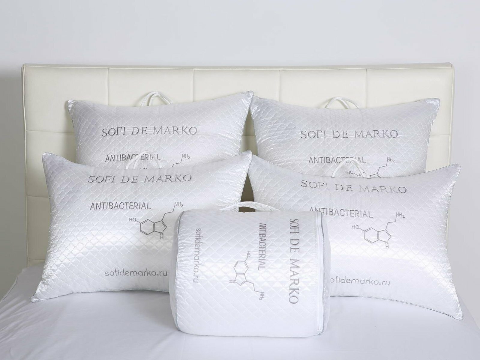 Коллекция подушек и одеял «Аntibacterial» от SOFI DE MARKO – это не просто постельные принадлежности, но и защита от бактерий и вирусов. В качестве наполнителя в продукции «Аntibacterial» от SOFI DE MARKO используется натуральное соевое волокно, известное своими целебными свойствами. Усиленный антибактериальный компонент в составе волокна эффективно препятствует появлению и размножению микробов, обеспечивая надежную защиту от пылевых клещей. Соевые аминокислоты способствуют снижению воспалительных процессов, замедлению старения кожи, нормализации сна. Благодаря дополнительной обработке ткани изделия устойчивы к загрязнениям, легко переносят стирку, не теряя при этом своих уникальных антибактериальных свойств. Стильные подушки и одеяла серии «Аntibacterial» от SOFI DE MARKO не только украсят спальню, но и будут гарантом комфорта и безопасности сна.