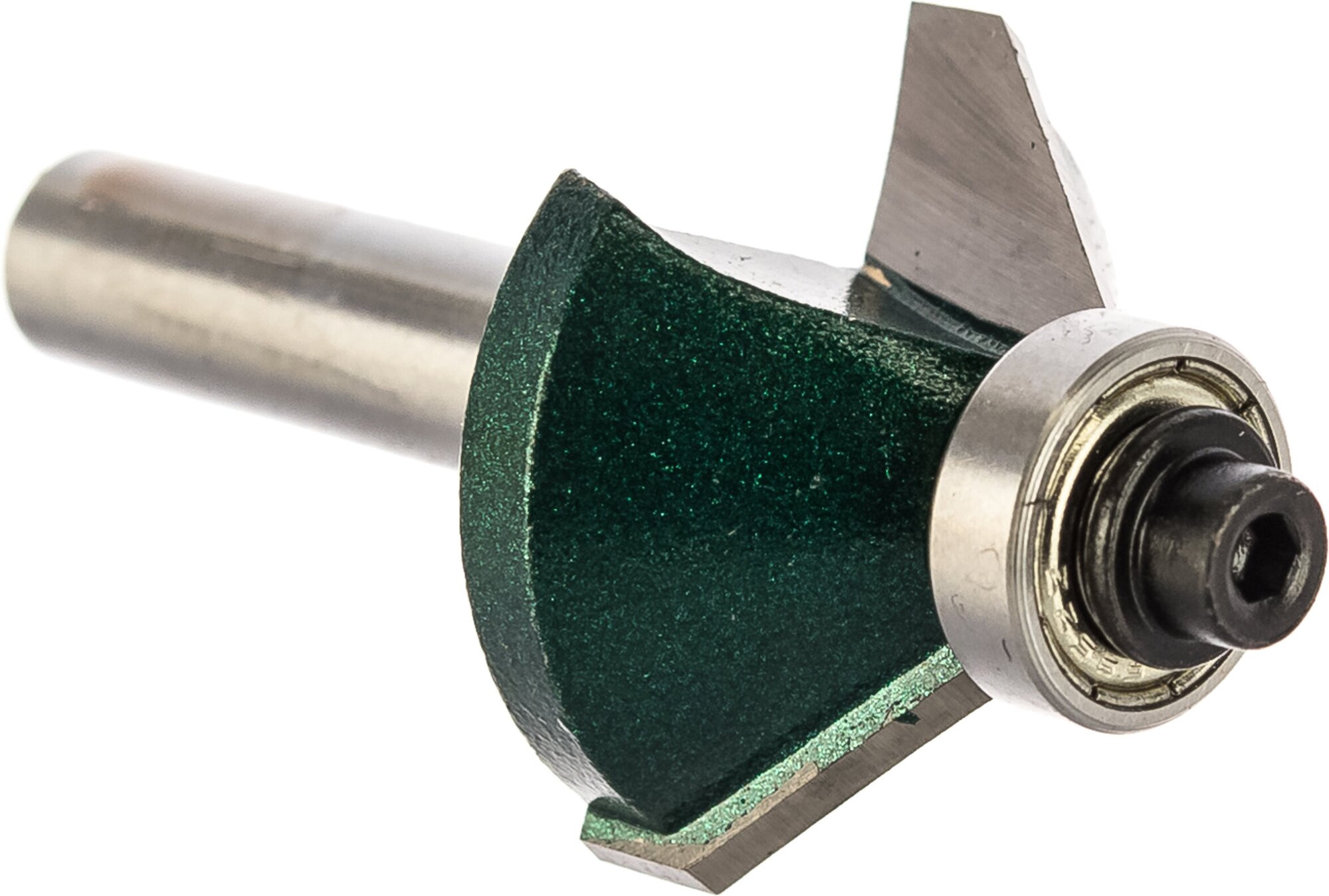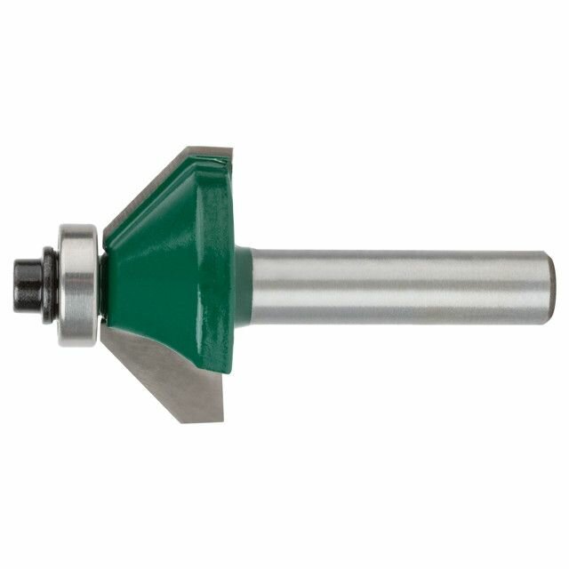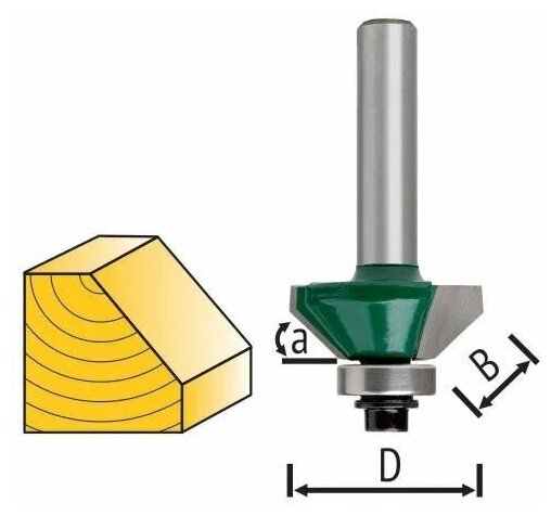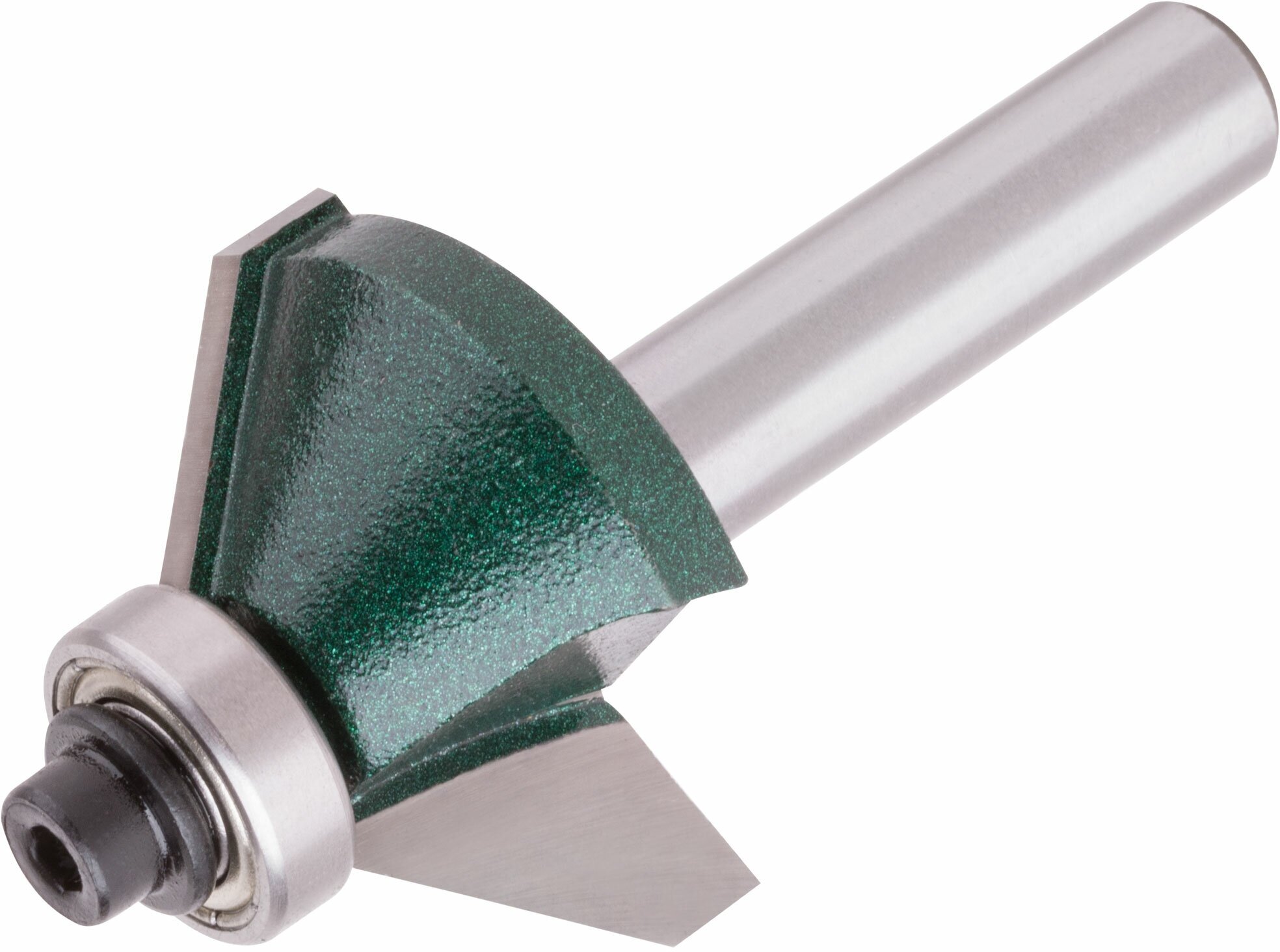 Используется для работ по дереву. С нижним подшипником. Для фрезерования кромок. Угол при вершине 45°. Цилиндрический хвостовик. Материал: инструментальная сталь, с твердосплавными режущими вставками. Упаковка: пластиковая коробка.