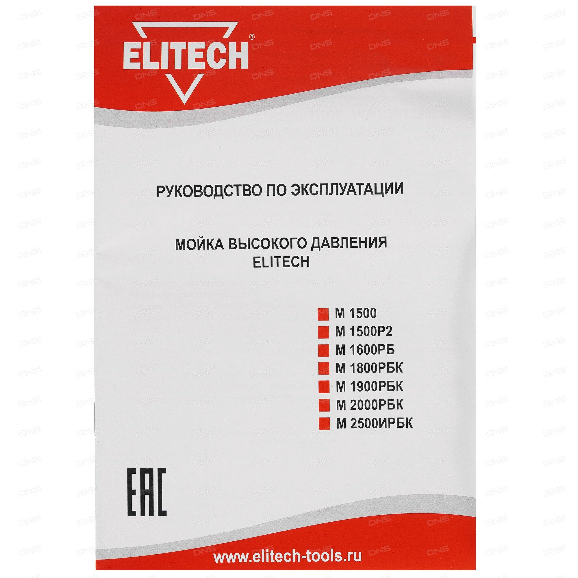 ELITECH М1500Р2 Мойка высокого давления (1500Вт100атм330л/час6кгсамовсасывающая)