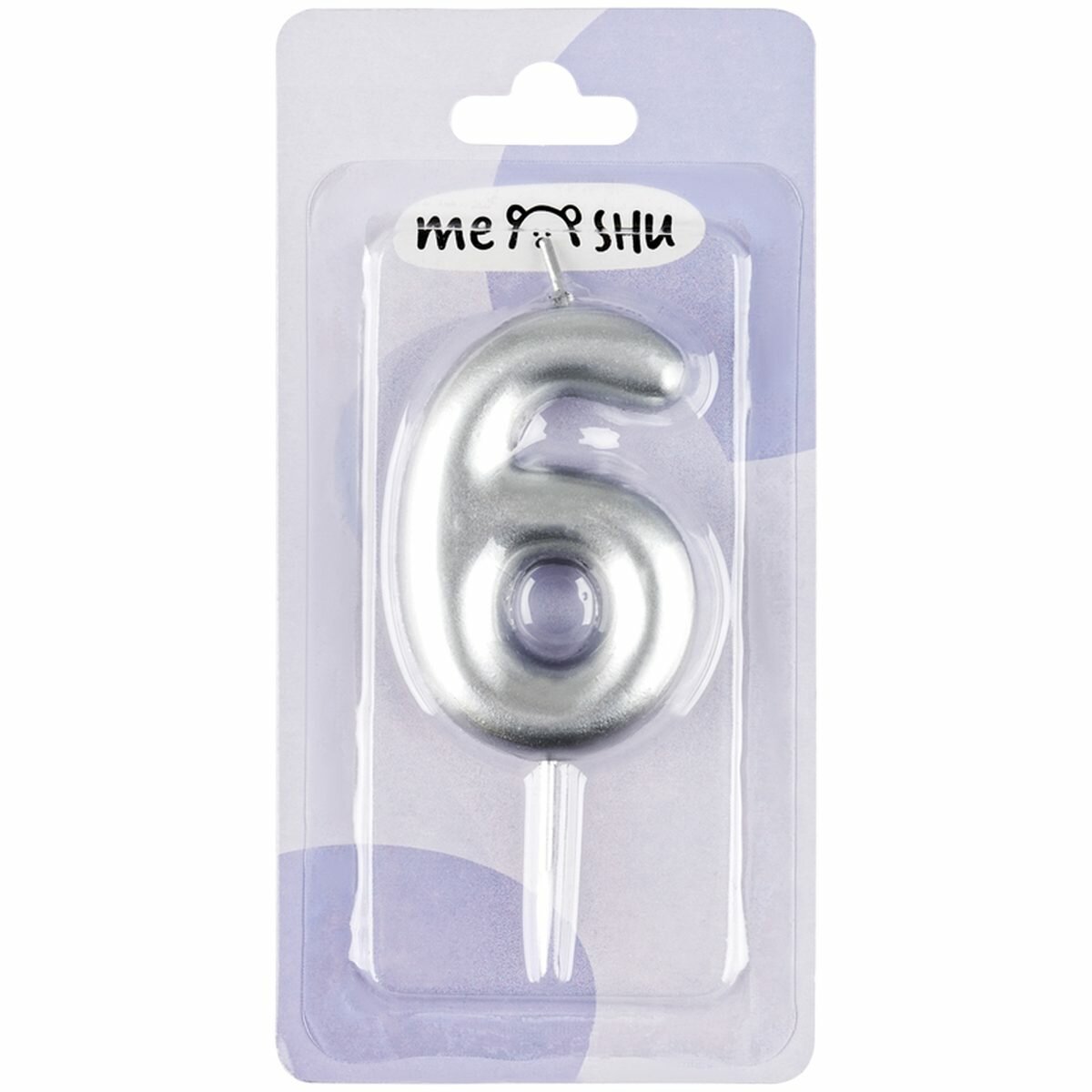 Свеча для торта с держателем MESHU "Цифра 6" 6 см серебряная блистер (MS_59792)