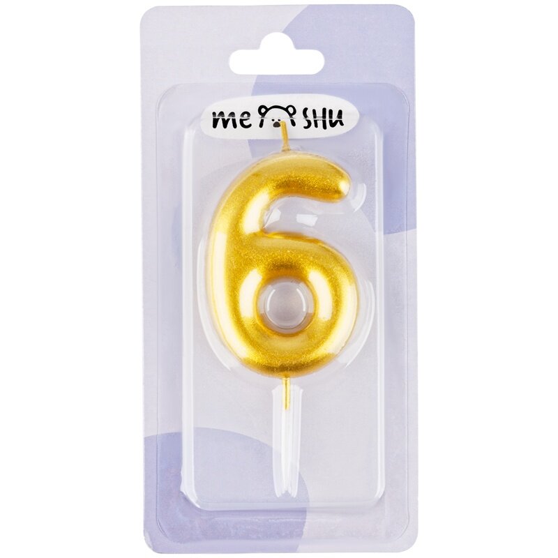 Свеча для торта с держателем MESHU "Цифра 6" 6 см золотая блистер (MS_59310)