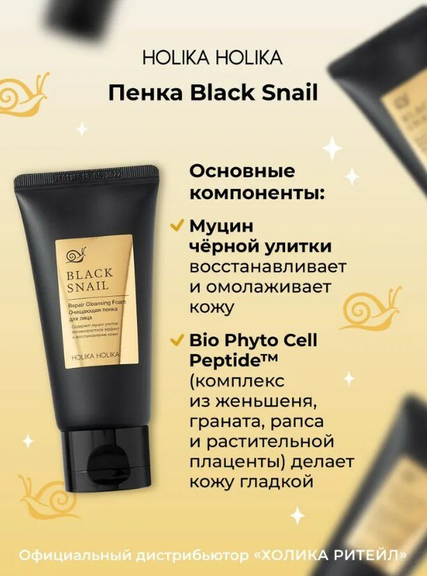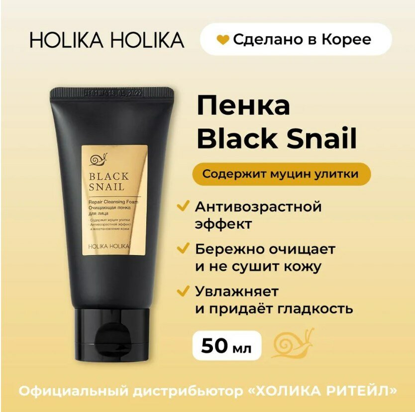 Holika Holika Очищающая пенка для лица с экстрактом муцина улитки Prime Youth Black Snail Repair Foam Cleanser 50 мл (20013463)
