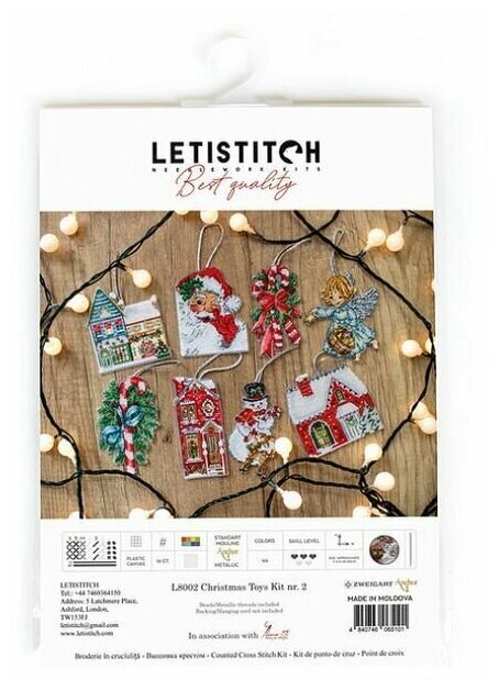 L8002 Набор для вышивания LetiStitch 'Набор рождественских игрушек № 2' 9*8см 8 шт.