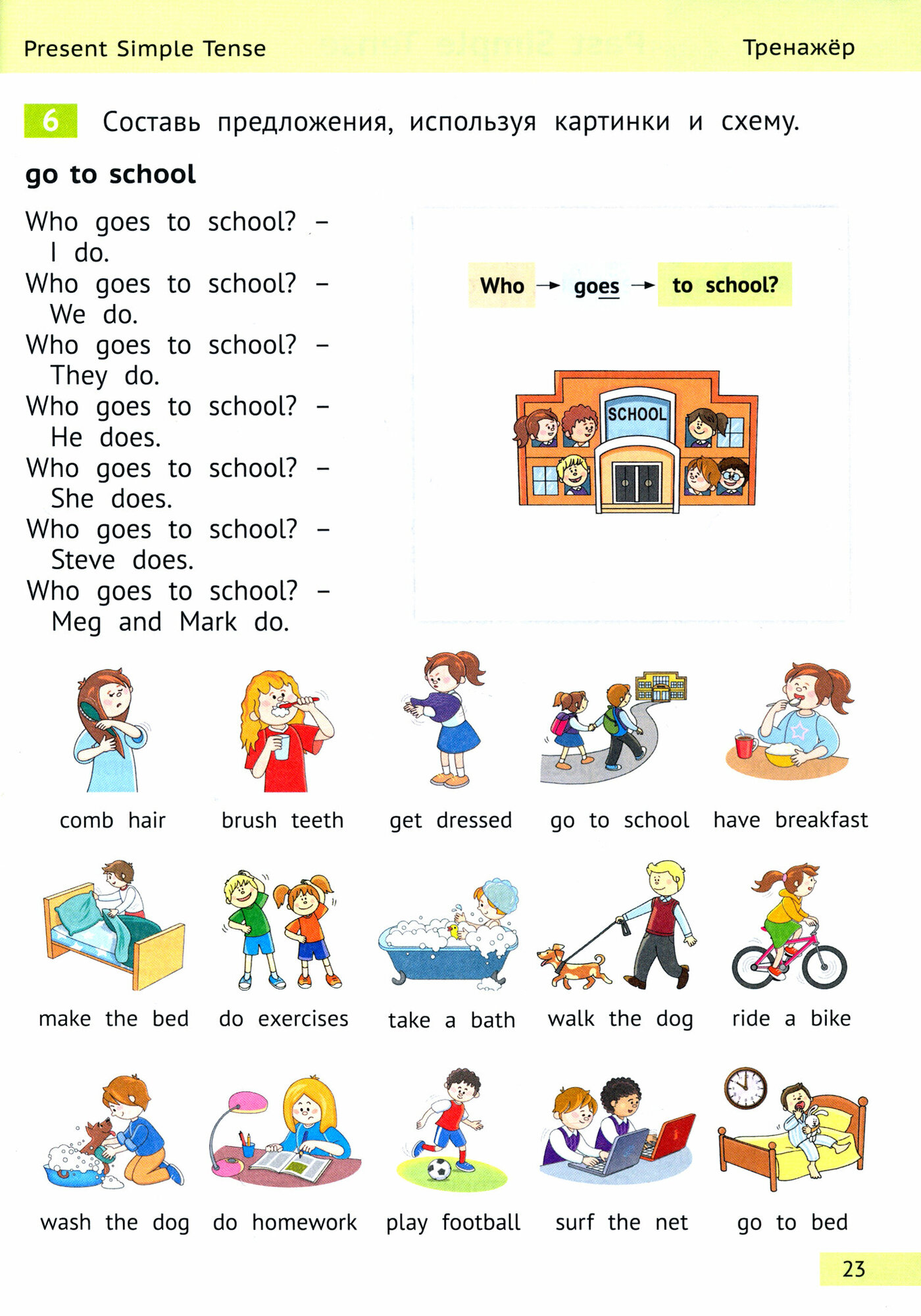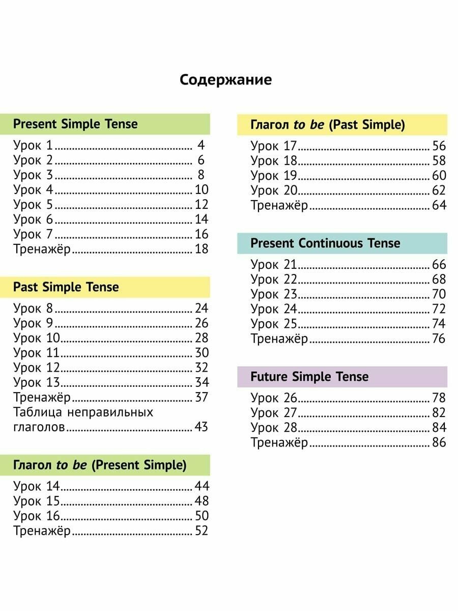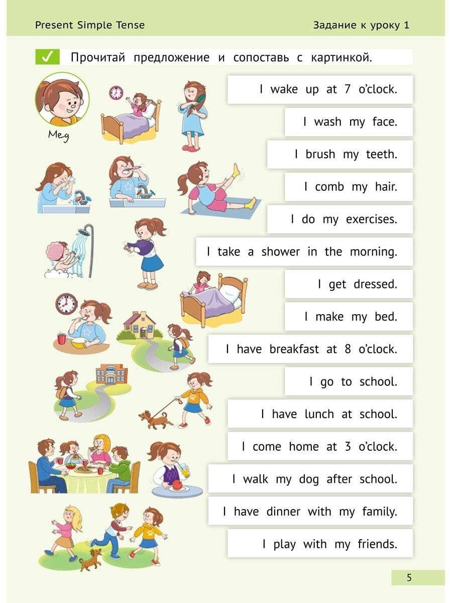 Пособие предназначено для обучения грамматике английского глагола в Present Simple Tense, Past Simple Tense, Present Continuous Tense, Future Simple Tense, а также глагола to be в этих временах. Основная задача пособия – выработать автоматизм построения фраз в изучаемых конструкциях.