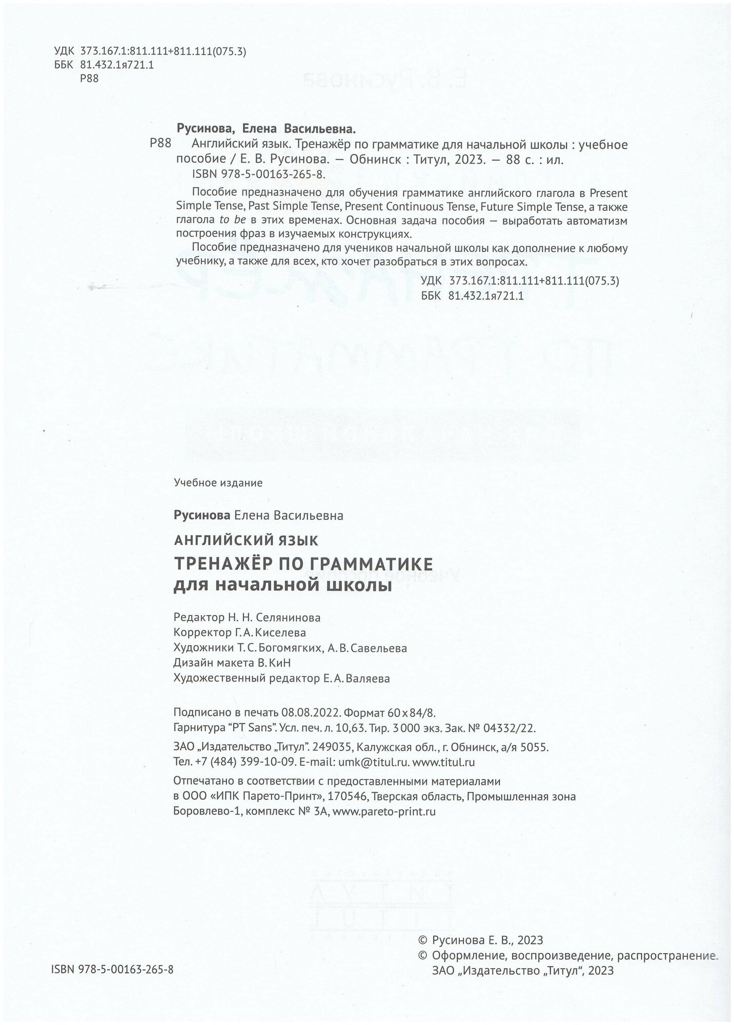 Английский язык. Тренажер по грамматике для начальной школы (Русинова Елена Васильевна); Титул, 2023