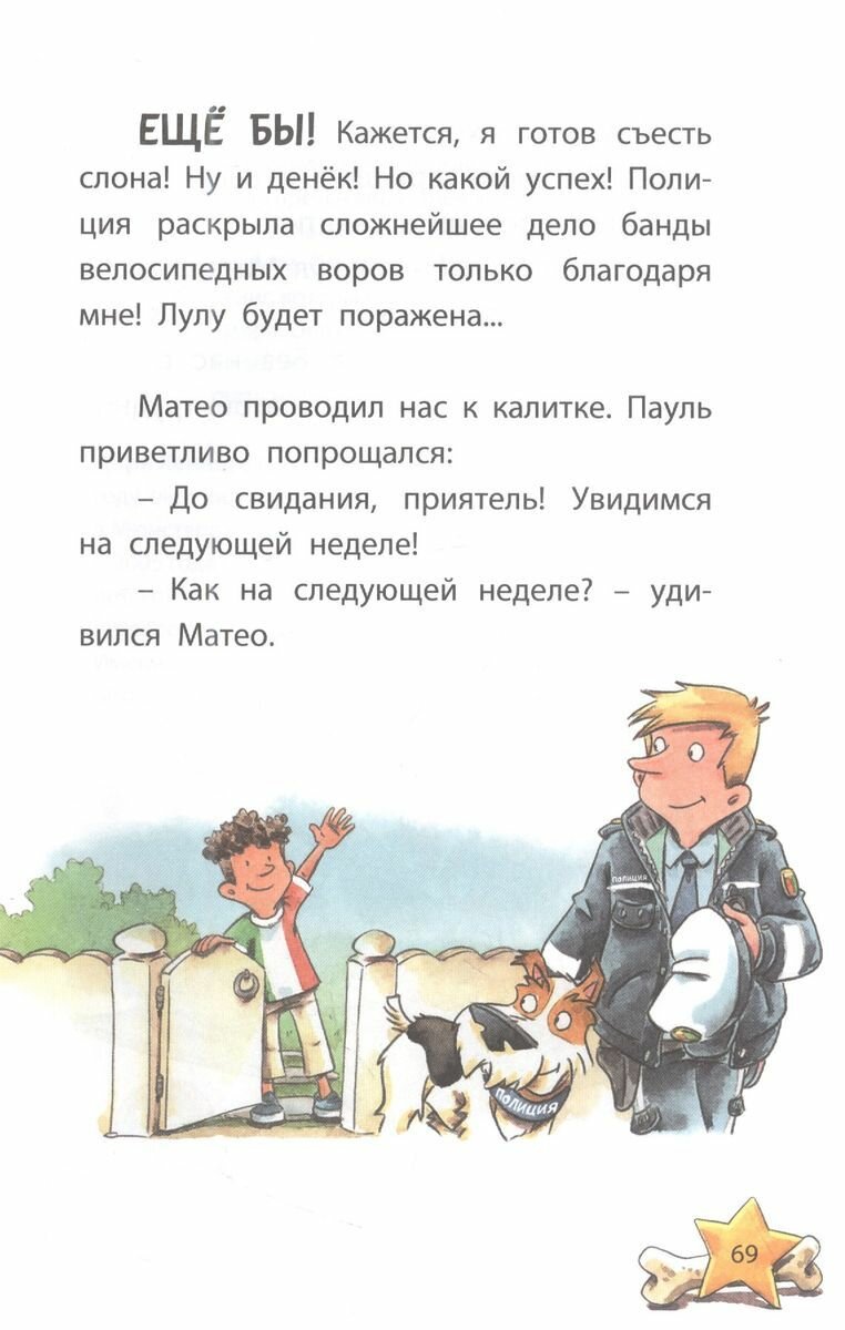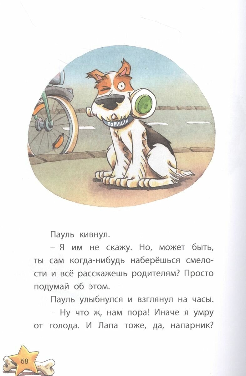 Пауль обратил внимание на странное поведение мальчика, а Лапа по запаху нашел его портфель, а там оказалось то, что всех удивило – велозамок. Все догадались, мои дорогие взрослые читатели? И вы правы. Но, тем не менее, в конце книги была задержана банда поитителей велосипедов, давно терроризировавшая город.