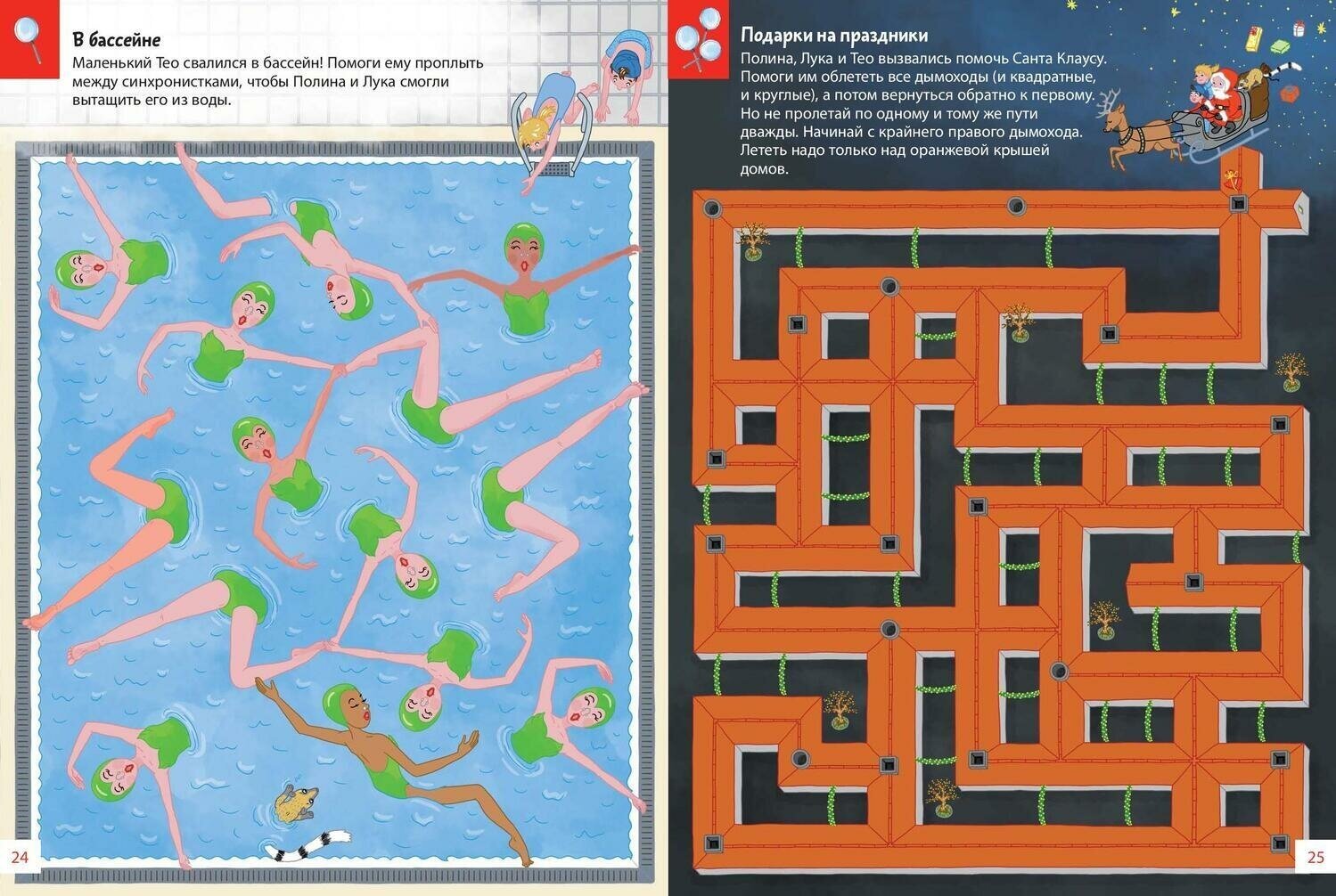 Полина и её брат Лука – отважные путешественники. Они не боятся самых сложных дорог! Им предстоит пройти по разнообразным лабиринтам – высоко в горах, в море, в жаркой пустыне и даже на небе. Присоединяйся к ним! Помоги друзьям не заблудиться в заколдованном лесу, найти маму потерявшегося динозаврика, починить сложный механизм и преодолеть множество опасных препятствий.