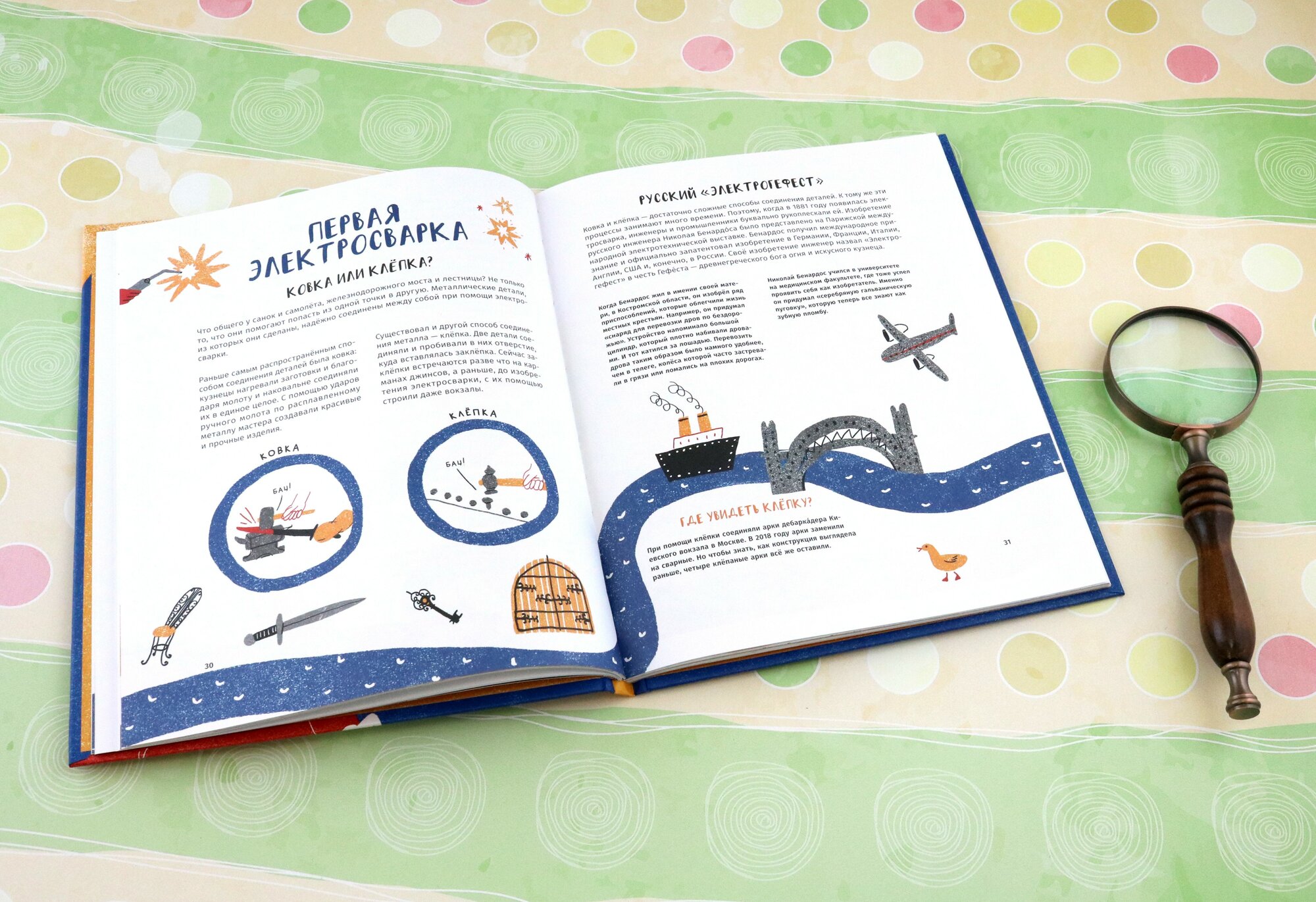 Хорошая книга, просто и понятно рассказывающая об открытиях в научной и технической сферах. Многое факты из книги обсуждали всей семьей, отличный повод для совместного досуга. Задачки и зашифрованные слова внутри книги вызвали особый интерес у ребенка, а истории про создание первого огнетушителя, противогаза и мехового холодильника наши самые любимые.