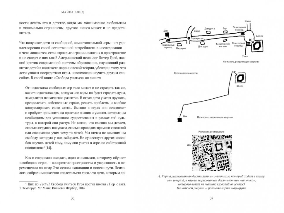 "Тот факт, что мы теряемся не так уж часто, можно считать чем-то вроде чуда. Окружающий мир бесконечно сложен, и все же большинство из нас могут ориентироваться в нем. Мы способны идти по незнакомым улицам, придерживаясь определенного направления, сокращать путь, прокладывая новые маршруты, и по прошествии многих лет помнить места, где были всего один раз. Это поразительные достижения. Одна из задач этой книги состоит в том, чтобы объяснить, как мы это делаем: как наш мозг составляет когнитивные карты, которые помогают ориентироваться даже в незнакомых местах. Но что еще важнее, книга рассказывает о наших взаимоотношениях с миром, о том, как понимание окружающего мира влияет на психологию и поведение". (Майкл Бонд)