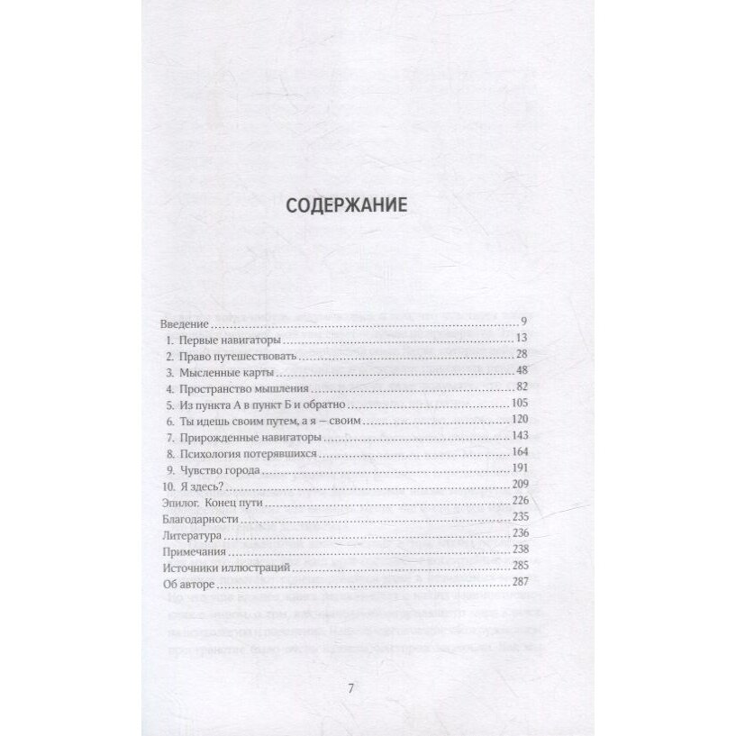 Навыки навигации глубоко укоренились в нашей биологии. Способность находить путь на большие расстояния в доисторические времена дала Homo sapiens эволюционное преимущество, позволяя исследовать самые отдаленные уголки планеты. Умение ориентироваться тесно связано с другими важными когнитивными функциями, такими как абстрактное мышление, воображение и память. Майкл Бонд обобщает результаты новейших исследований в области психологии, нейробиологии, этологии и антропологии и приводит примеры из опыта людей, чья профессия или род занятий так или иначе связаны с навигацией - мастеров спортивного ориентирования, летчиков, поисково-спасательных добровольцев, картографов, градостроителей и других. Результатом стало увлекательное погружение в тему ориентирования человека в естественной и искусственной среде с особым акцентом на рассмотрении нейробиологических основ этого важнейшего навыка.