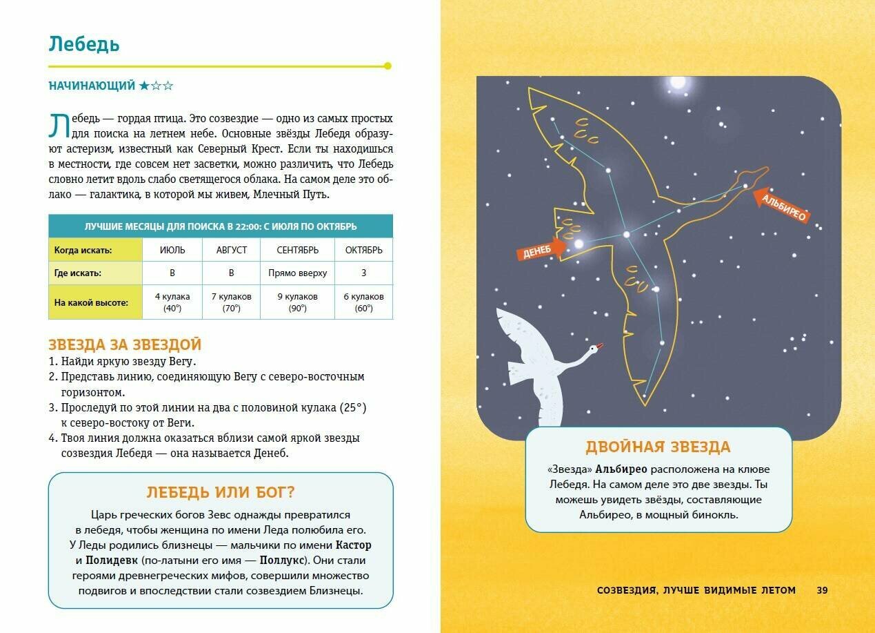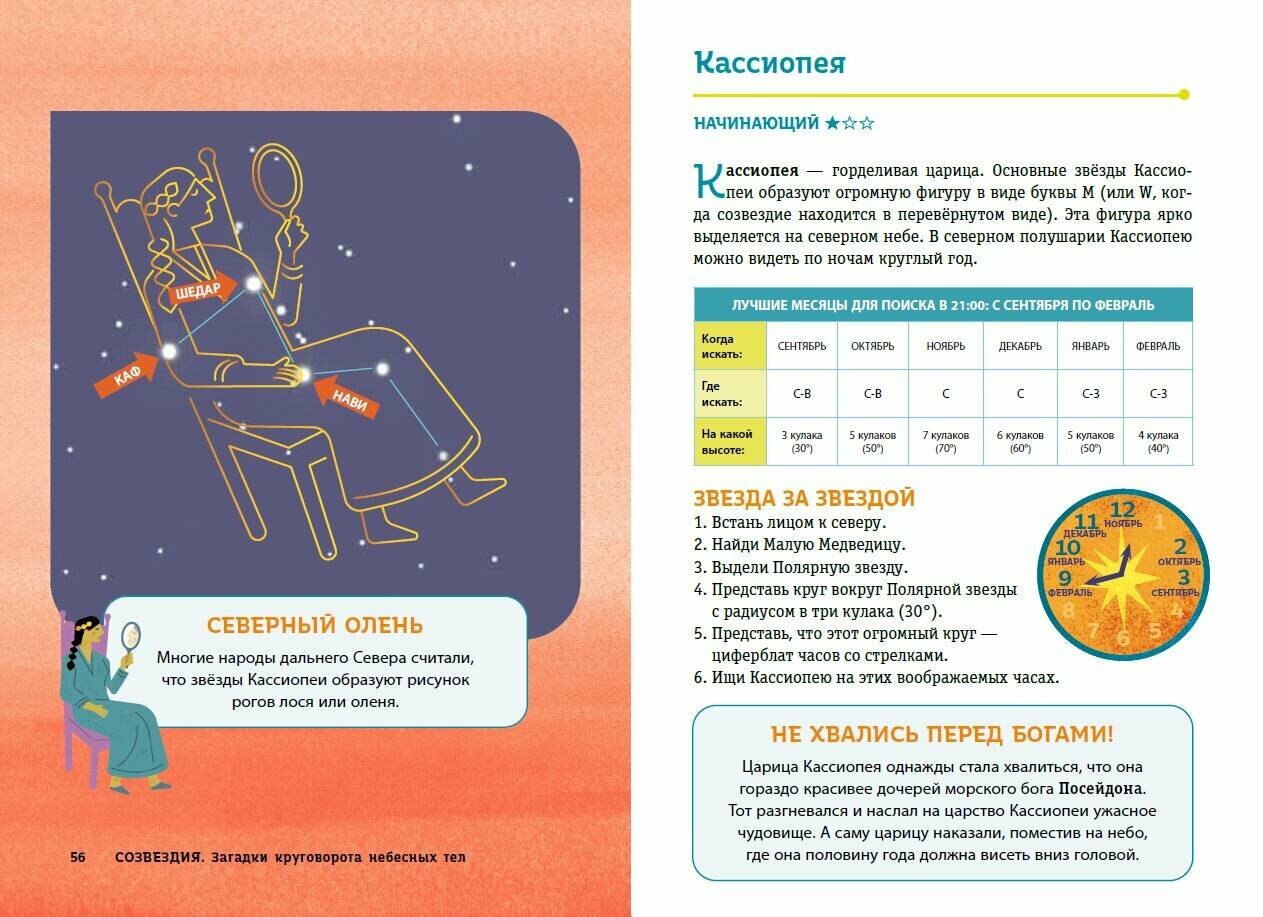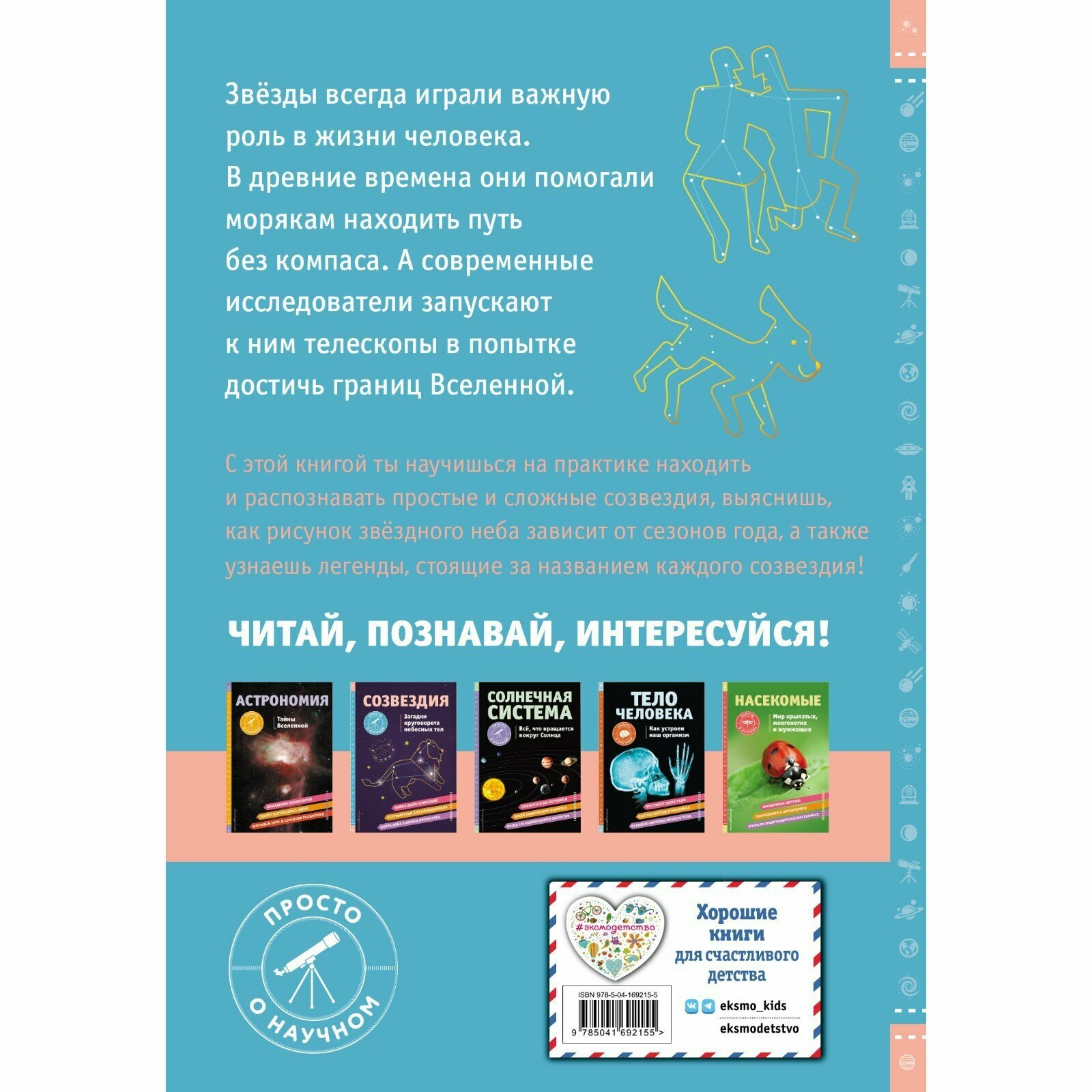 Давно искала такую книгу для ребенка ( 8 лет, периодически интересуется звездами). Очень просто, наглядно, с доступно рассказанными мифами и историями, с картой неба и описанием созвездия, - так что можно и потренироваться в нахождении и найти. Еще и рассказано, в какое время года лучше искать то или иное созвездие! Великолепно! Так что теперь читаем, тренируемся искать и ищем на небе!