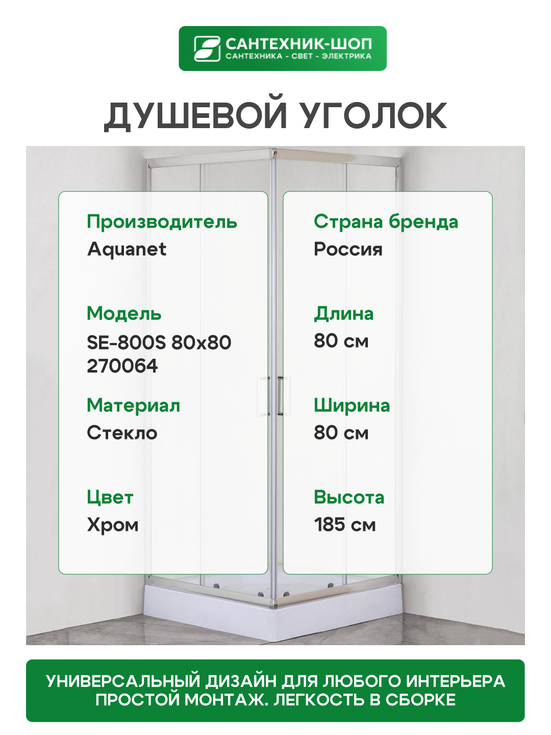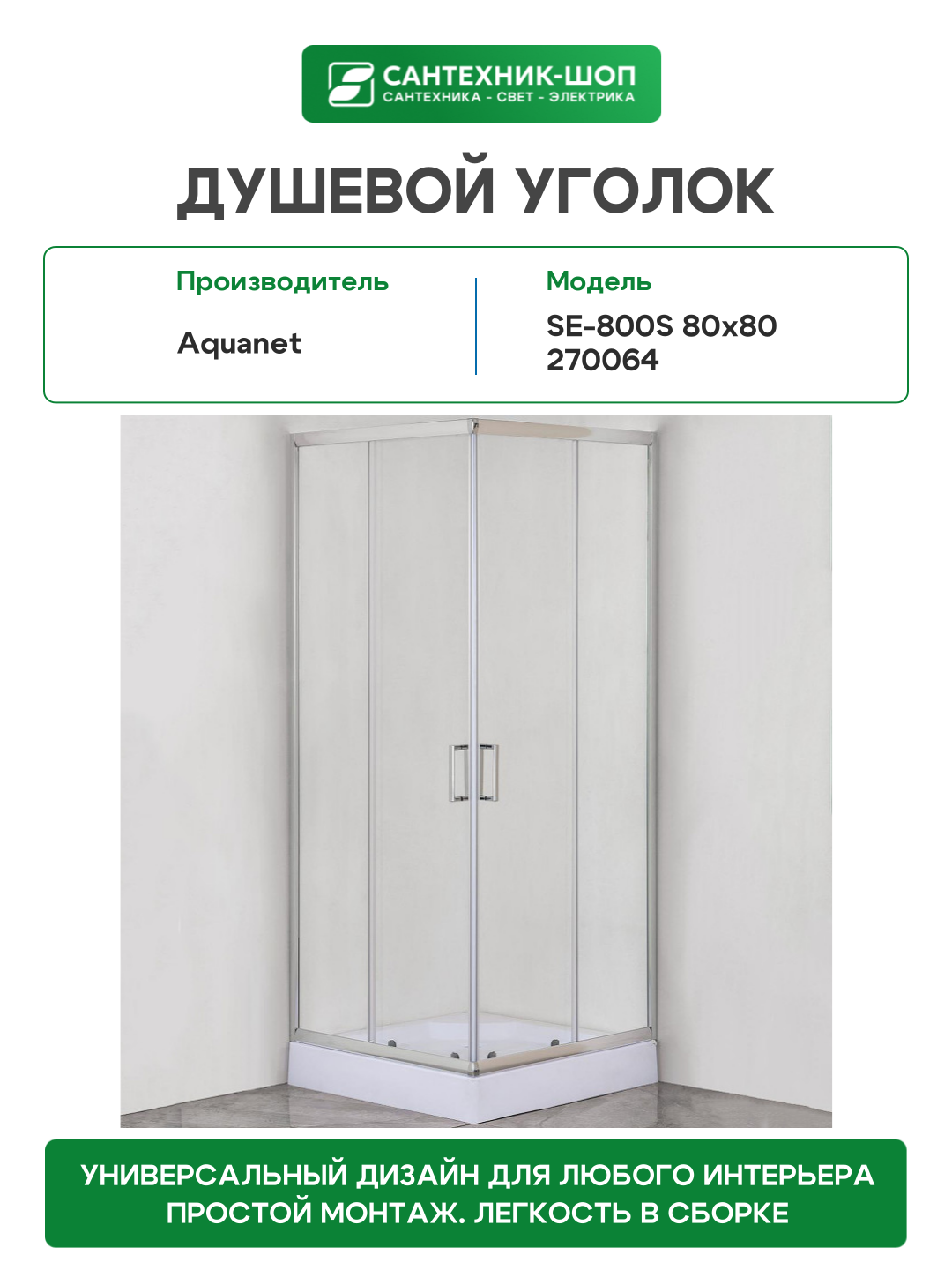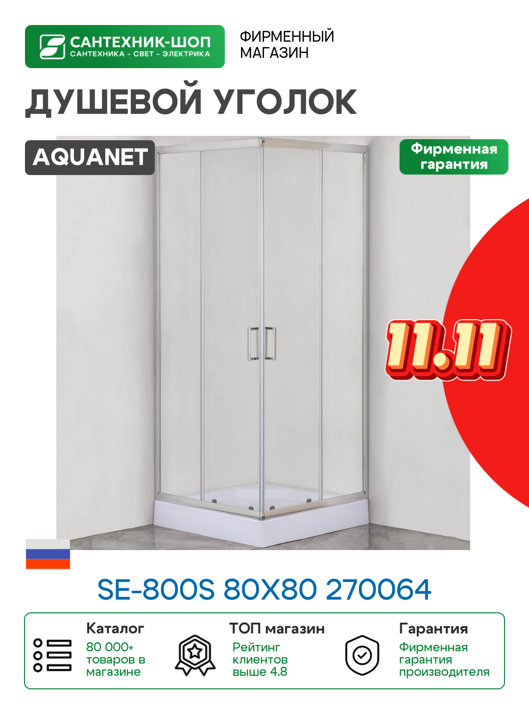 Душевой уголок Aquanet SE-800S 80x80 270064 профиль Хром стекло прозрачное