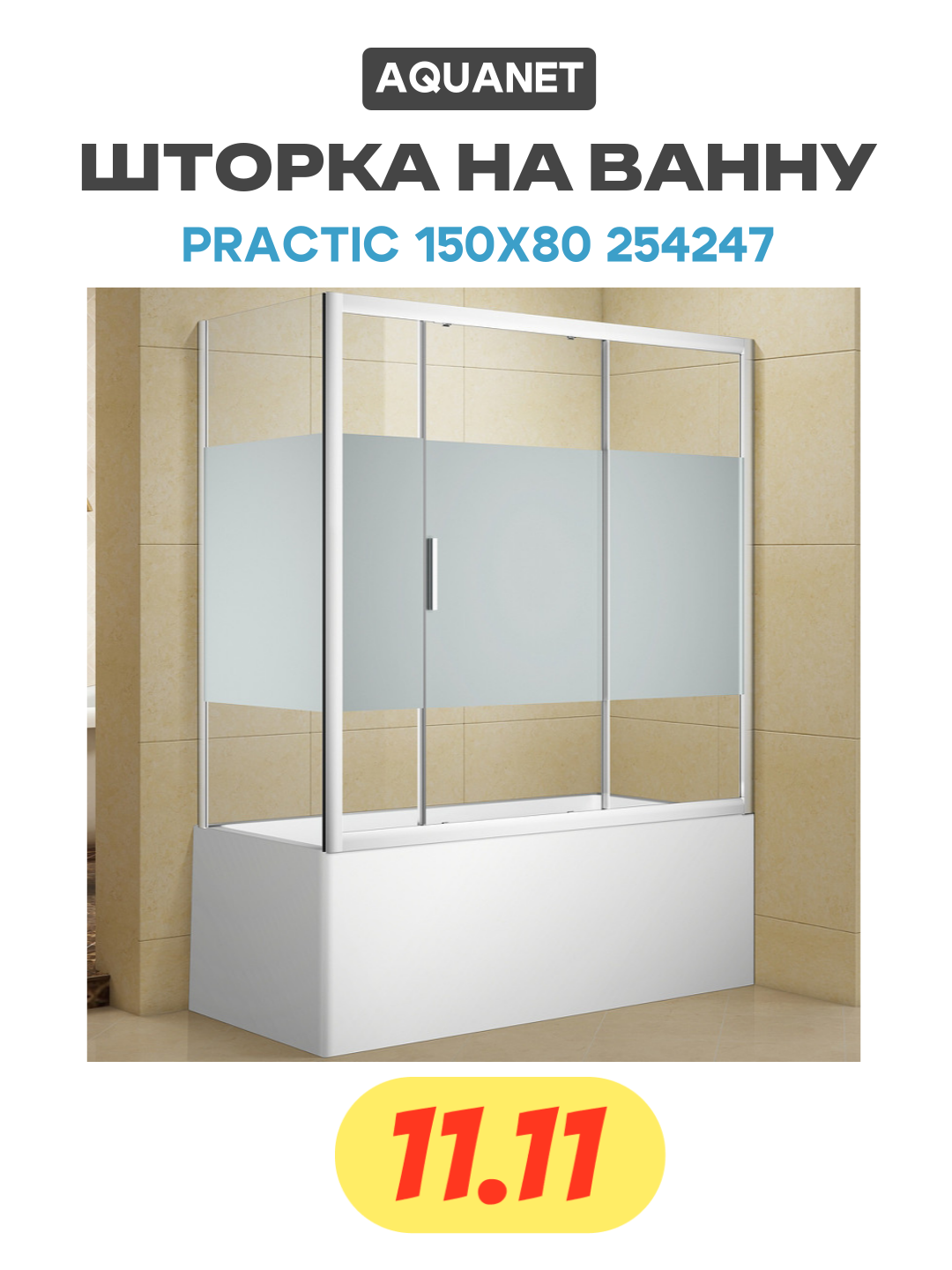 Сервис сравнения цен СкидкаГИД предлагает сравнить цены на товар «Шторка на ванну Aquanet Practic 150х80 254247 профиль Хром стекло прозрачное с шелкографией»
