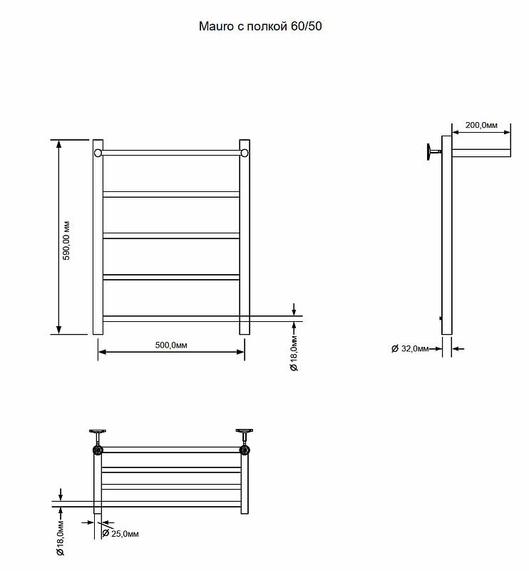 Электрический полотенцесушитель Aquanet Mauro 60х50 R 282006 с полкой Хром (размер: 50х60 см)