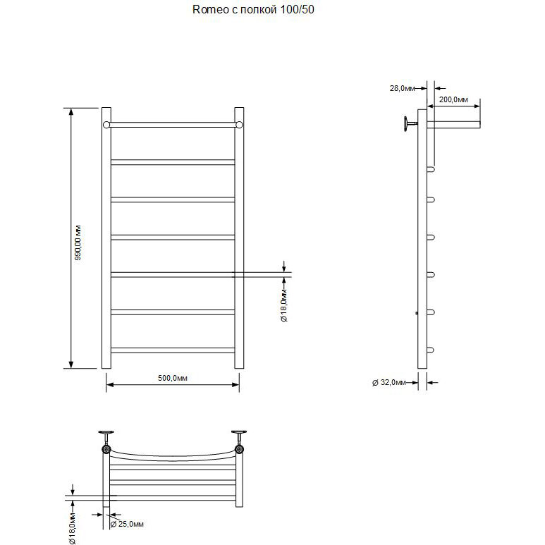 Модель: Romeo 100х50 R 281992 с полкой Хром