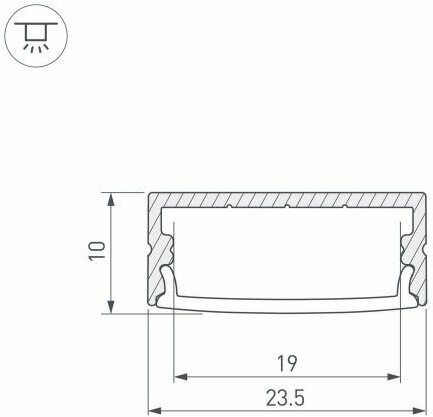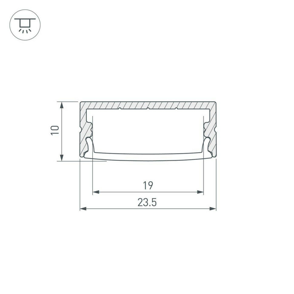 Накладной профиль из анодированного алюминия в комплекте с матовым экраном из акрила со светопропусканием 56%, заглушками (2 шт.) и держателями (2 шт.) для контурной подсветки элементов интерьера. Габаритные размеры профиля составляют 2000 мм в длину, 23,5 мм в ширину и 10 мм в высоту. Площадка для установки светодиодных лент позволяет использовать ленту шириной до 19 мм и мощностью до 17,5 Вт/м. Отличное решение для создания современных световых проектов.