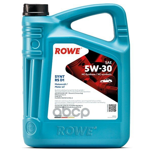 Сервис сравнения цен СкидкаГИД предлагает сравнить цены на товар «Моторное масло ROWE HIGHTEC SYNT RS D2 5w-30 SN PLUS RC ILSAC GF-6 синтетическое 4л (20212004099)»