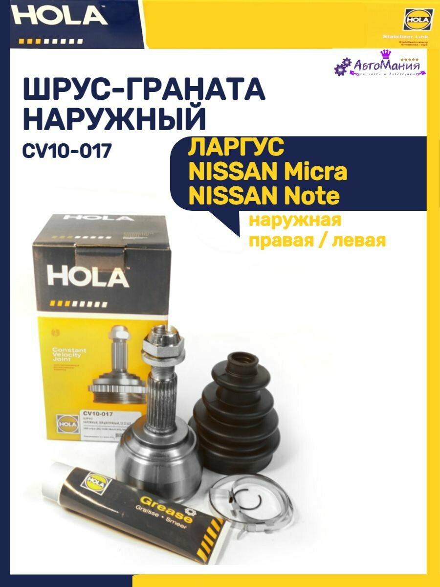 ШРУС ВАЗ LADA Largus/RENAULT с КПП JR5/NISSAN наружн. 23/22шл. полн кмп. (HOLA) CV10-017