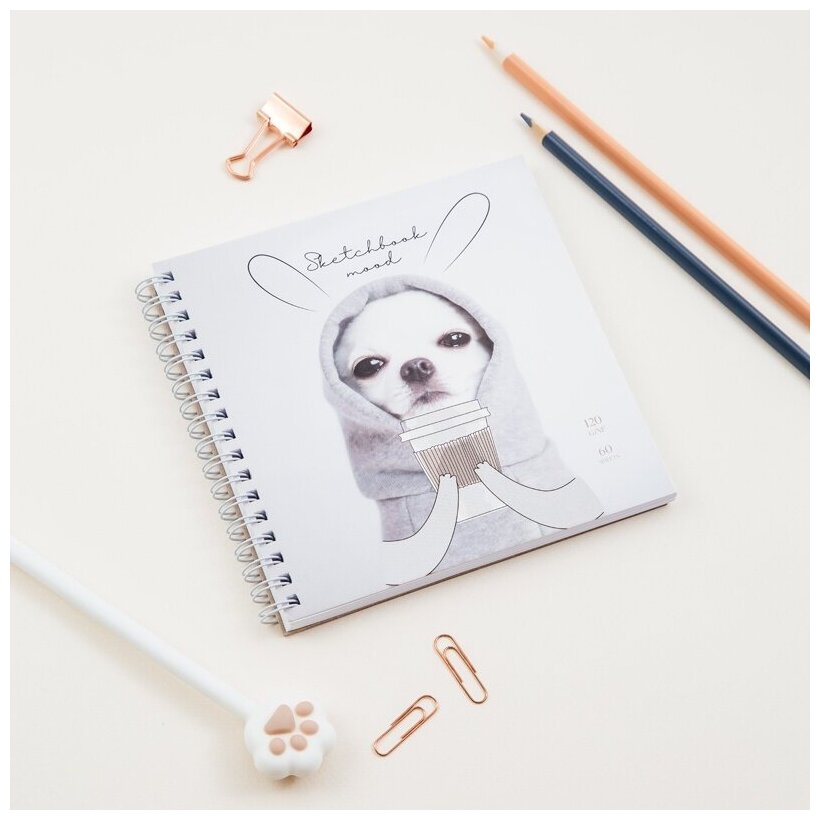Скетчбук MESHU "Puppy"150*150 мм 60 л 120 г на гребне soft-touch (MS_44868)