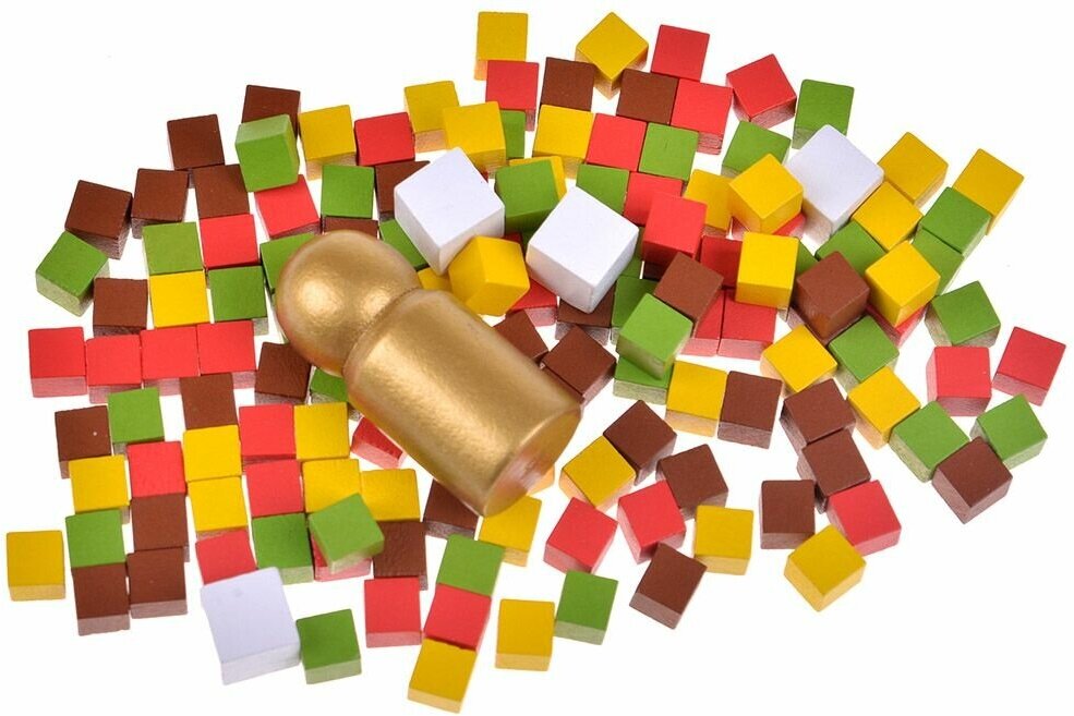 | Комплектация | • 56 базовых карт • 140 разноцветных кубов (по 35 каждого цвета) • 4 больших белых куба • деревянная фишка мастера • промокарта • 8 карт дополнения Эспрессо • промокарта лиссабонской кофейни • правила |