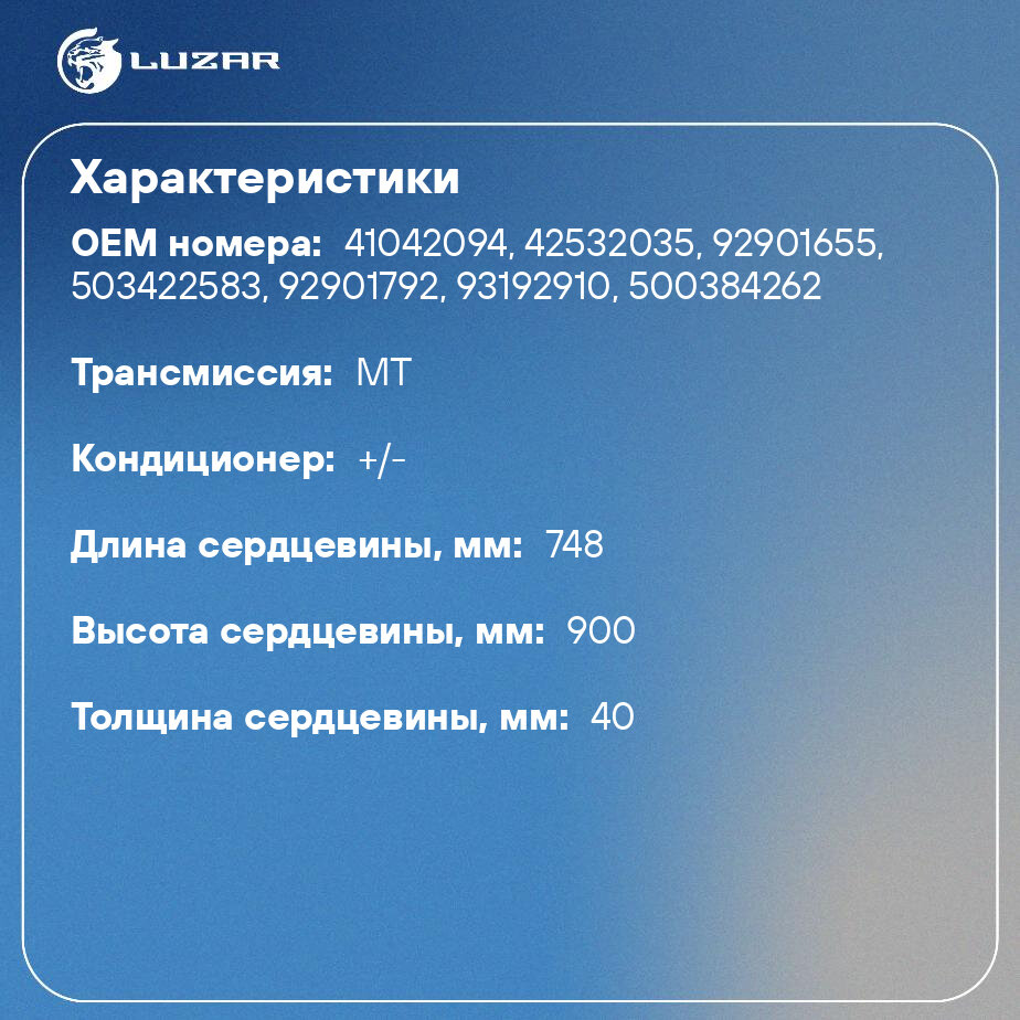Сервис сравнения цен СкидкаГИД предлагает сравнить цены на товар «Радиатор охлаждения для автомобилей Iveco EuroTech (92-)/EuroStar (93-)/EuroTrakker (92-) (с рамкой) LUZAR (LRc 1617)»