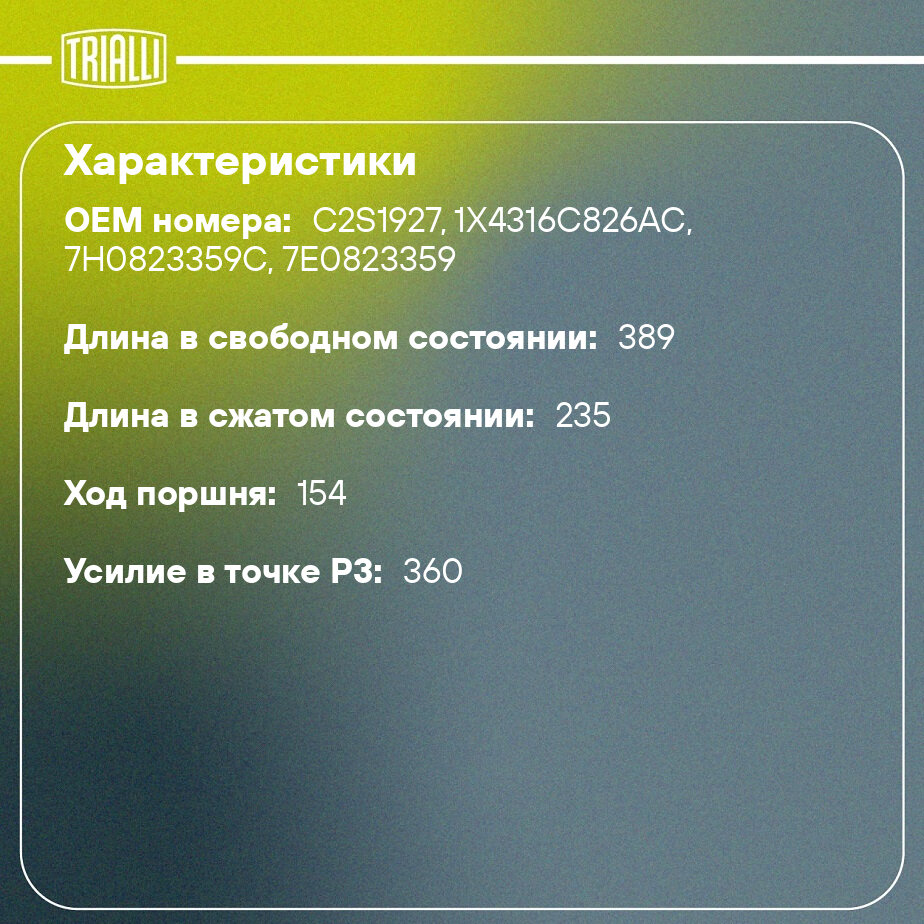 Сервис сравнения цен СкидкаГИД предлагает сравнить цены на товар «Амортизатор (упор) капота для автомобиля Volkswagen Transporter T5 (03-)/Multivan (03-) TRIALLI (GS 1847)»