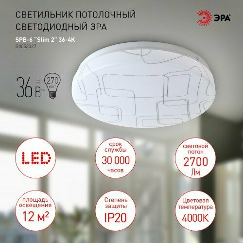 Потолочный светодиодный светильник Эра Slim SPB-6 Slim 2 36-4K (Б0053327)