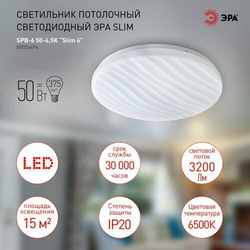 Стильный потолочный светильник SPB-6 "Slim 4" от компании ЭРА добавит свежести и практичности Вашему дому! Светодиодная люстра имеет стандартные габариты 210х50 мм, что позволит ей вписаться в любой интерьер.Электросветильник оснащен светодиодом с нейтральным белым свечением (6500 К). Кроме того, симметричное светораспределение и пластик в составе плафона защищают глаза от прямого света.Главным преимуществом LED люстры является наличие прочного стального корпуса. Он устойчив к повреждениям и имеет долгий срок службы.Рельефный дизайн рассеивателя, напоминающий морские волны, идеально сочетается с круглым плоским корпусом. За счет этого электросветильник освежит интерьер гостиной, спальни или прихожей.Срок службы 30 000 часов позволят беспрерывно использовать светодиодную люстру, создавая неповторимую атмосферу! Покупайте потолочный светильник SPB-6 "Slim 4" и воплощайте свои мечты в реальность!