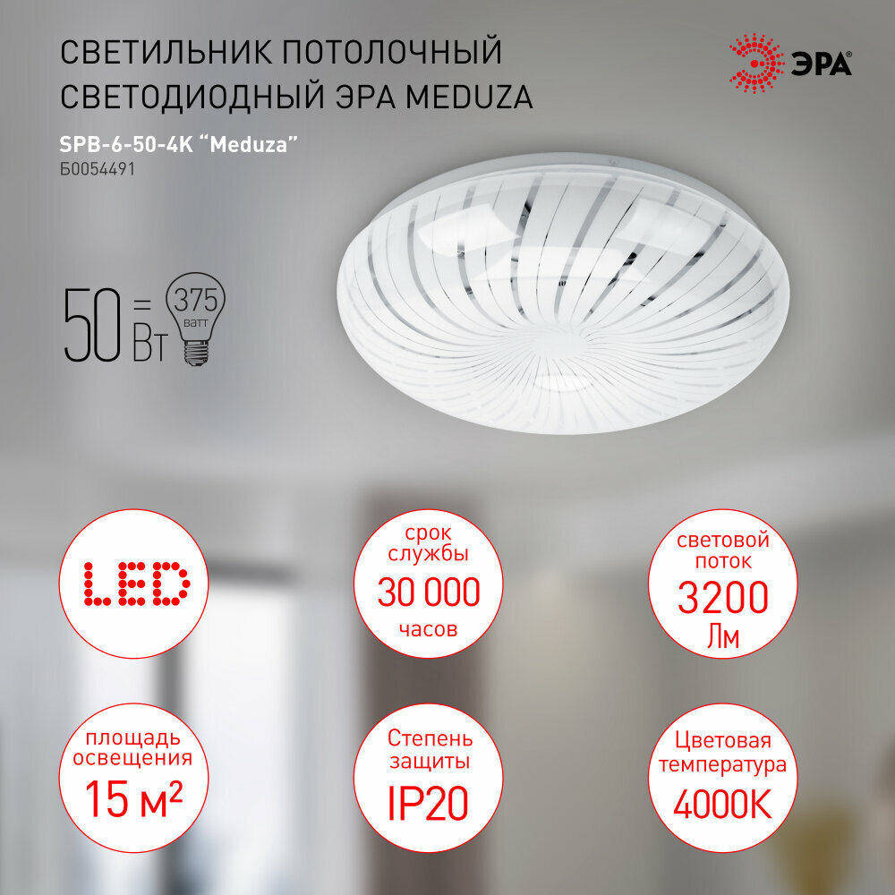 Потолочный светодиодный светильник Эра SPB-6-50-4K Meduza (Б0054491)