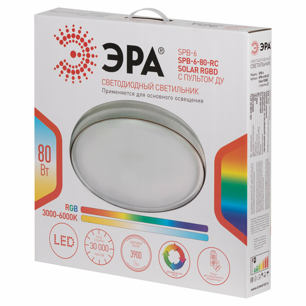 Потолочный светодиодный светильник с пультом ДУ Эра SPB-6-80-RC Solar (Б0054484)