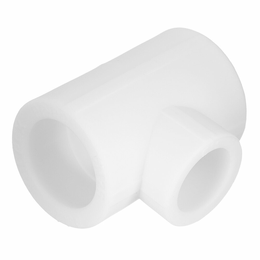 Тройник переходной — белый полипропиленовый фитинг длиной 6,45 см. Используется для стыковки ПП труб диаметром 32x25x32 мм в сети с давлением до 25 бар и максимальной температурой 90 °C (горячее водоснабжение, система отопления и кондиционирования, питьевая вода). Способ соединения — пайка при температуре насадки инструмента 260 °C.