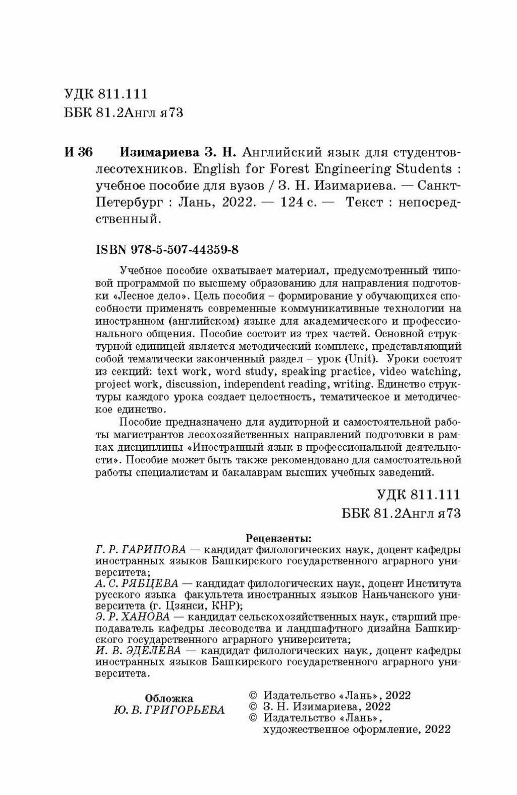 Английский язык для студентов-лесотехников. English for Forest Engineering Students. Учебное пособие (З. Н. Изимариева); Издательство ЛАНЬ, 2022