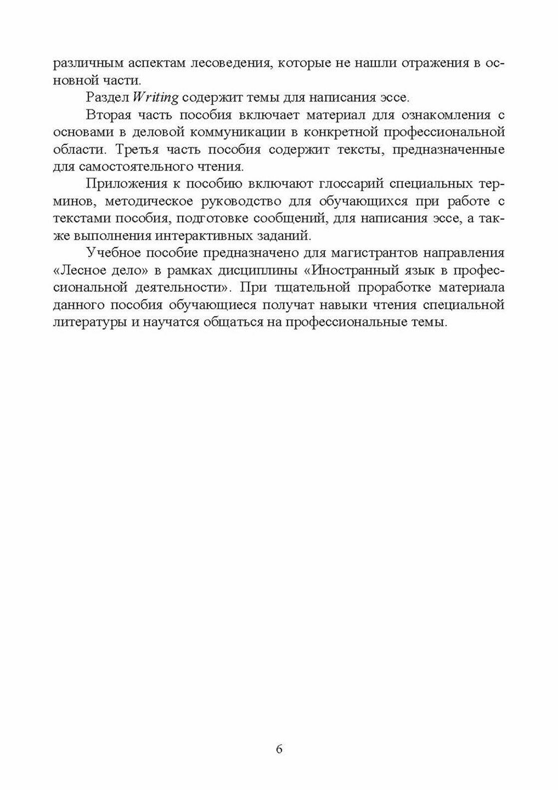 Пособие предназначено для аудиторной и самостоятельной работы магистрантов лесохозяйственных направлений подготовки в рамках дисциплины «Иностранный язык в профессиональной деятельности». Пособие может быть также рекомендовано для самостоятельной работы специалистам и бакалаврам высших учебных заведений.