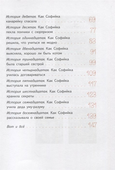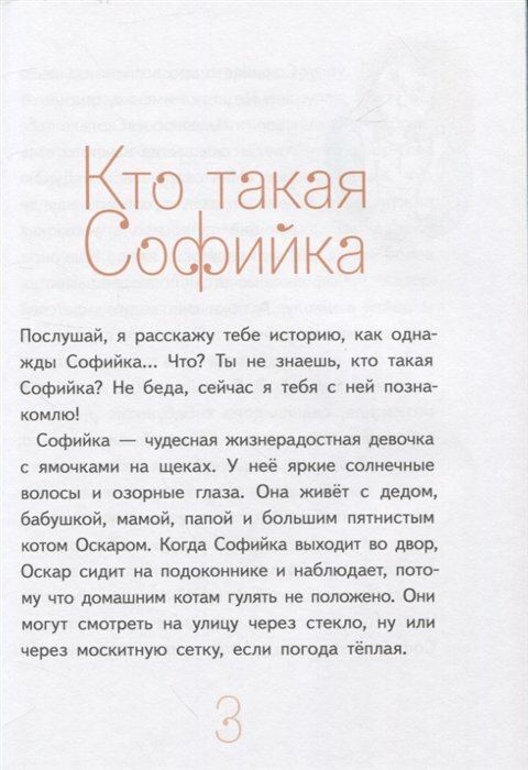 Но удивительной Софийку называют прежде всего потому, что очень любят! Даже тогда, когда она из жалости выпускает из клетки канарейку, чтобы та летела на Канарские острова, или теряет в тесте своё колечко и им с бабушкой приходится надкусывать каждый пончик, чтобы его отыскать. Ведь когда кого-то любишь, он всегда для тебя будет необыкновенным!