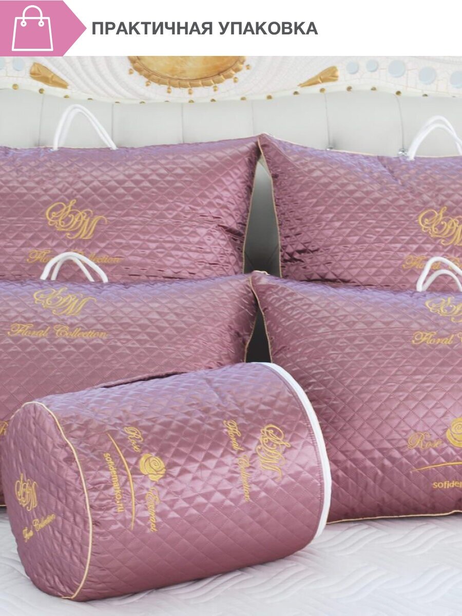 Обработка наполнителя экстрактом розы делает подушку особенной. Она поможет расслабиться, снять усталость, быстро уснуть и восстановить силы. Умеренная мягкость дополняет образ полезного аксессуара для отдыха.