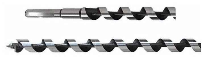Специальное сверло – Спираль Левиса. Широкая спираль сверла даёт очень эффективную возможность выхода стружки, независимо от того, сухая древесина или сырая. Снабжено центровочным наконечником, что позволяет точно просверлить отверстие.