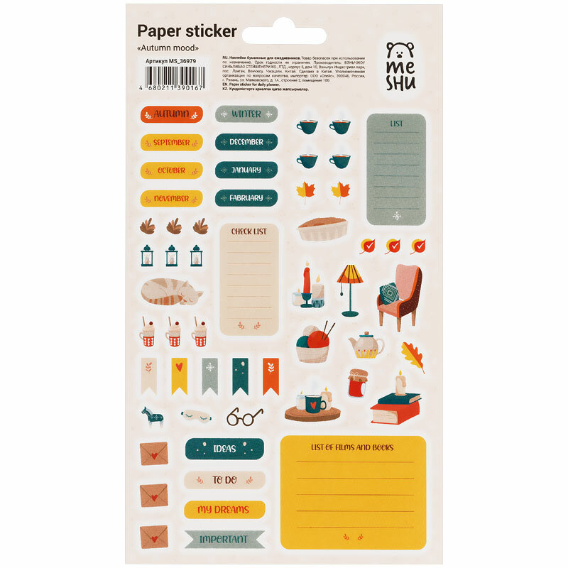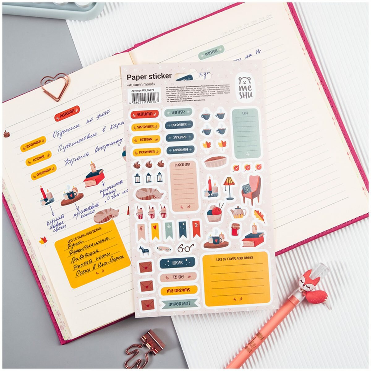 Наклейки бумажные для ежедневников MESHU "Autumn mood" 12*21см 59 наклеек (MS_36979)