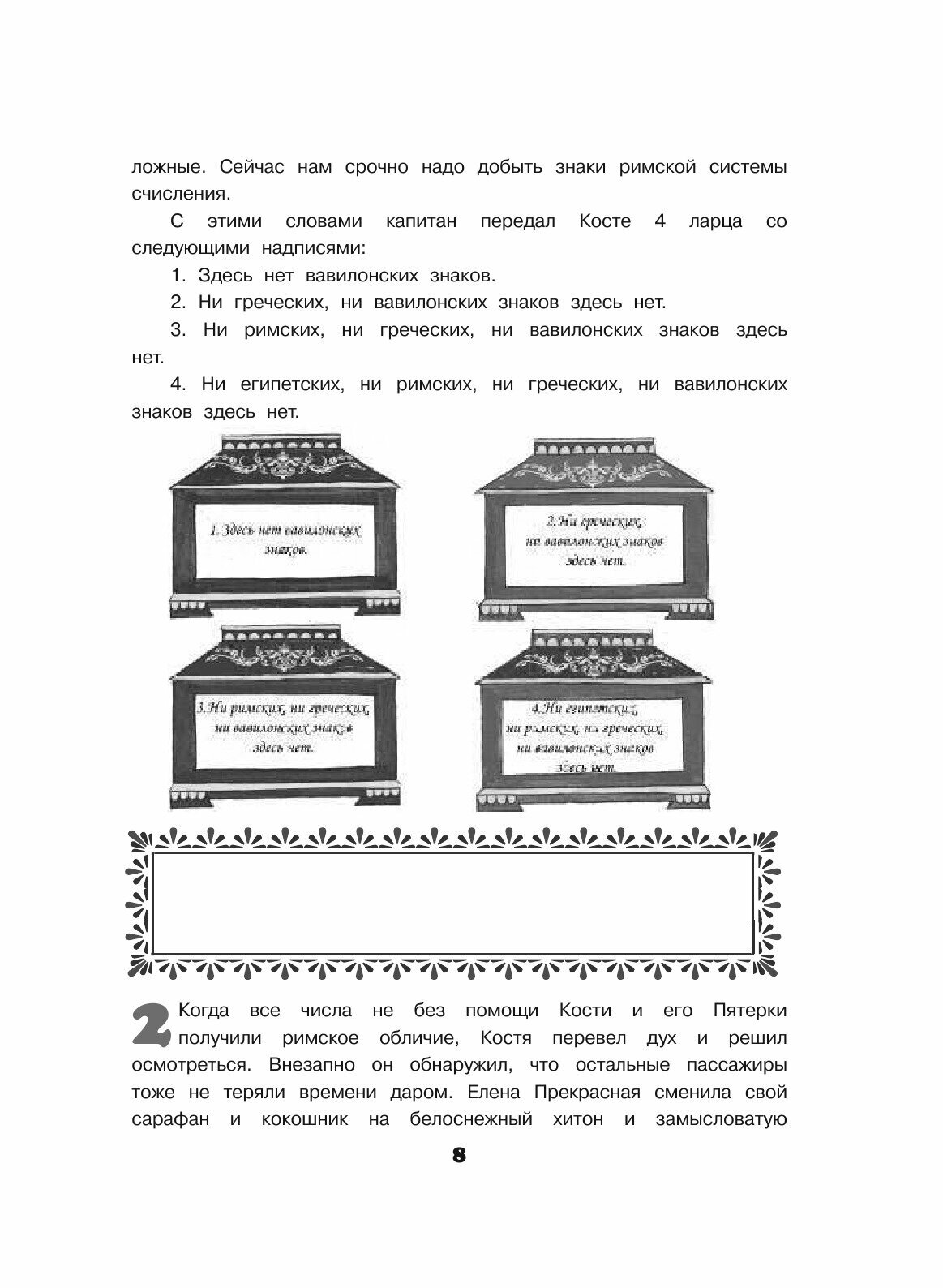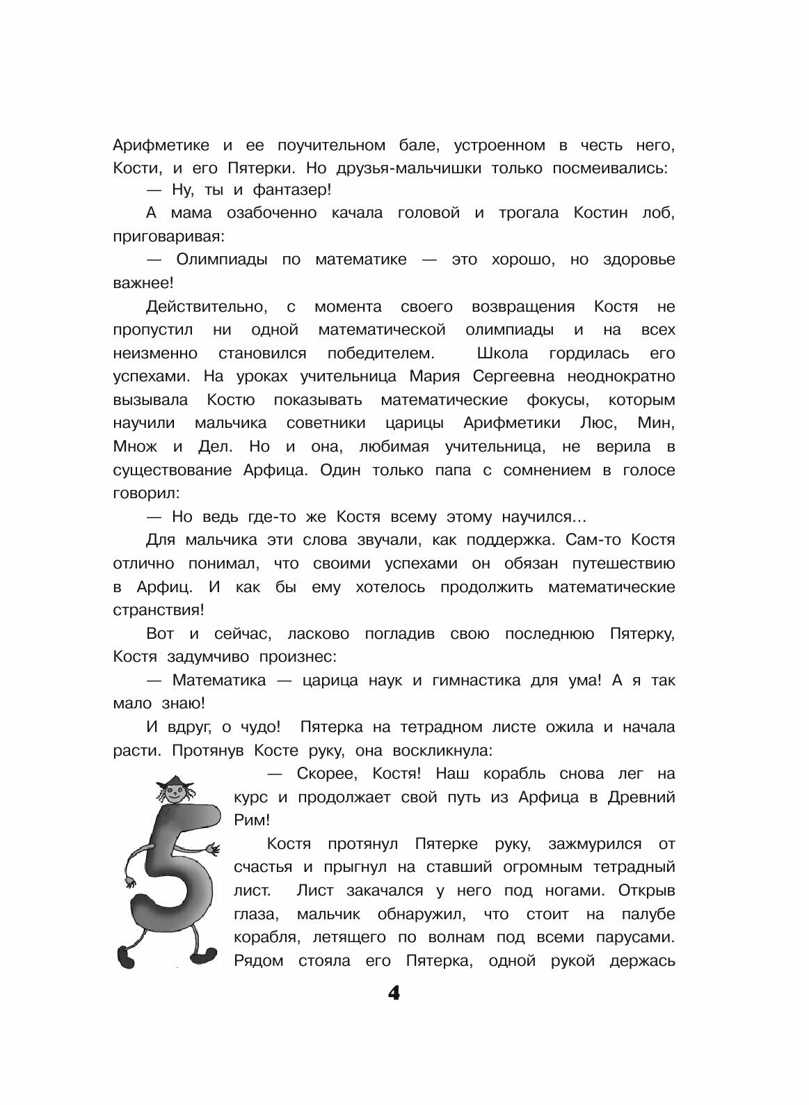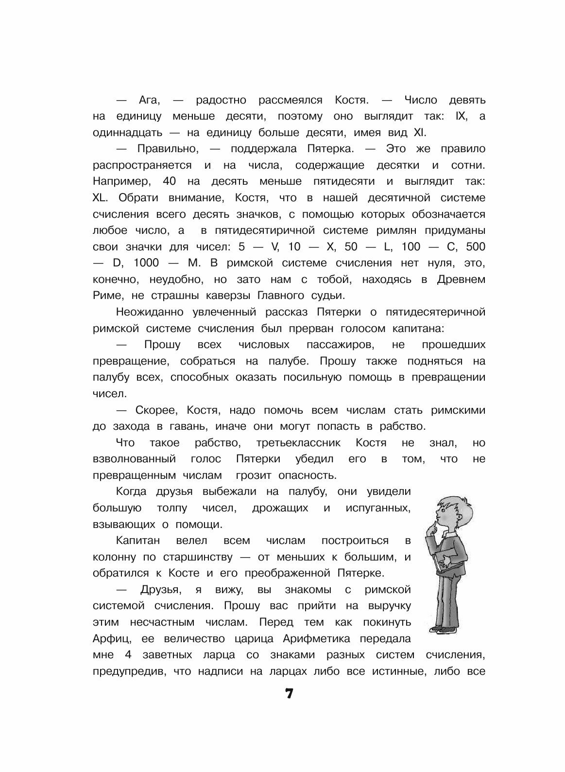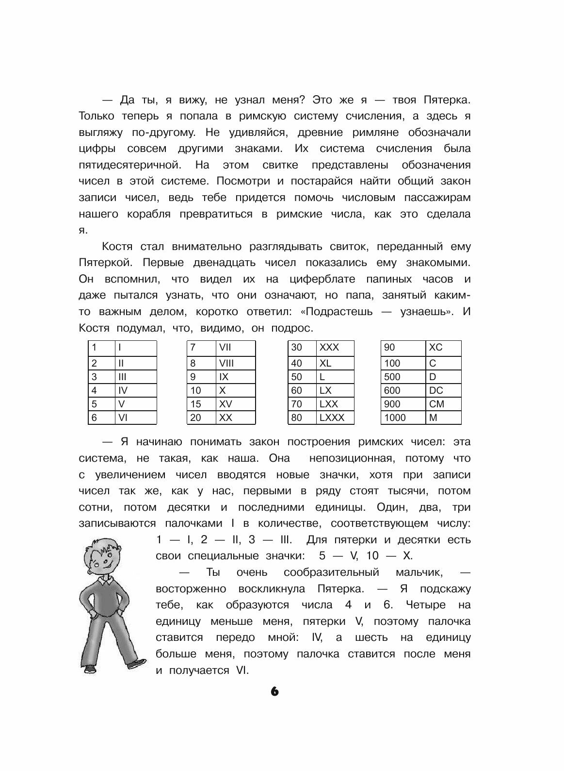 Это сказочное повествование тесно переплетается с реальными событиями истории Древнего Рима, Греции и Египта. Главный герой, современный школьник, встречается с великими математиками и политиками прошлого, знакомясь с древними системами счисления. В сюжет органично вставлены древние и авторские логические, арифметические, алгебраические и геометрические задачи. Книга поможет детям увлечься математикой и расширить кругозор.