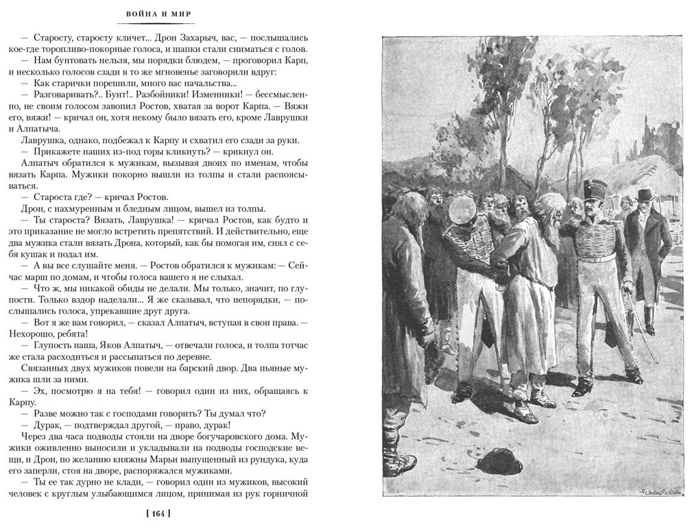 Роман Льва Николаевича Толстого «Война и мир» — книга на все времена. Кажется, что она существовала всегда, настолько знакомым кажется текст, едва мы открываем первые страницы романа, настолько памятны многие его эпизоды: охота и святки, первый бал Наташи Ростовой, лунная ночь в Отрадном, князь Андрей в сражении при Аустерлице... Сцены «мирной», семейной жизни сменяются картинами, имеющими значение для хода всей мировой истории, но для Толстого они равноценны, связаны в едином потоке времени. Каждый эпизод важен не только для развития сюжета, но и как одно из бесчисленных проявлений жизни, которая насыщена в каждом своем моменте и которую учит любить Толстой.