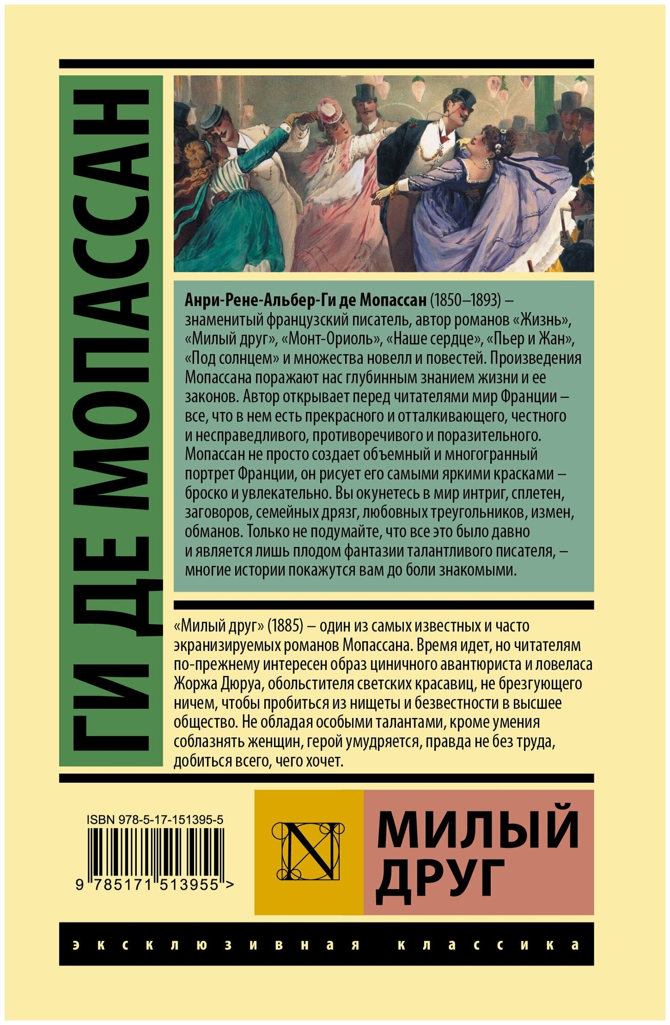 «Милый друг» (1885) – один из самых известных и часто экранизируемых романов Мопассана. Время идет, но читателям по-прежнему интересен образ циничного авантюриста и ловеласа Жоржа Дюруа, обольстителя светских красавиц, не брезгующего ничем, чтобы пробиться из нищеты и безвестности в высшее общество. Не обладая особыми талантами, кроме умения соблазнять женщин, герой умудряется, правда, не без труда, добиться всего, чего хочет.