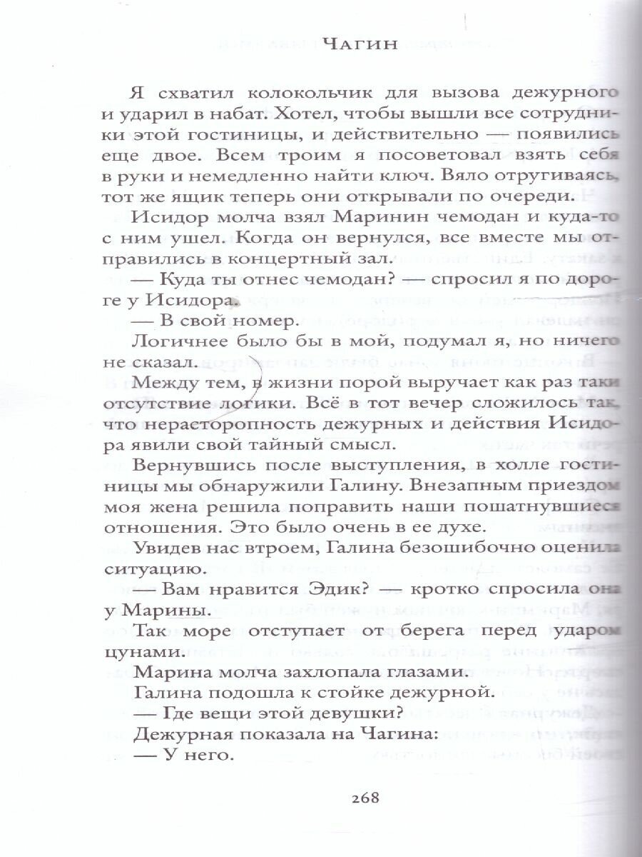 Что читатель найдет в «Чагине» — историю любви, прервавшуюся почти на всю жизнь и вновь обретенную перед смертью? пронзительную исповедь дневников? авантюрную историю о чекистах и шпионаже? роман в письмах? Одновременно всё — и ничего из этого. Водолазкин мыслит поверх жанров и создаёт собственный — узнаваемый и любимый читателями — «роман о памяти и неразрывности времени».