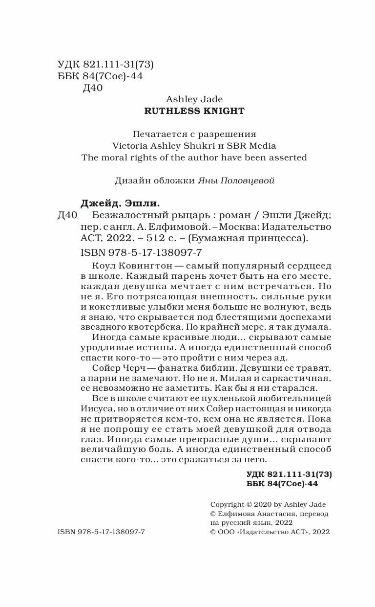 Книга: Безжалостный рыцарь (Эшли Джейд); Издательство АСТ, 2020